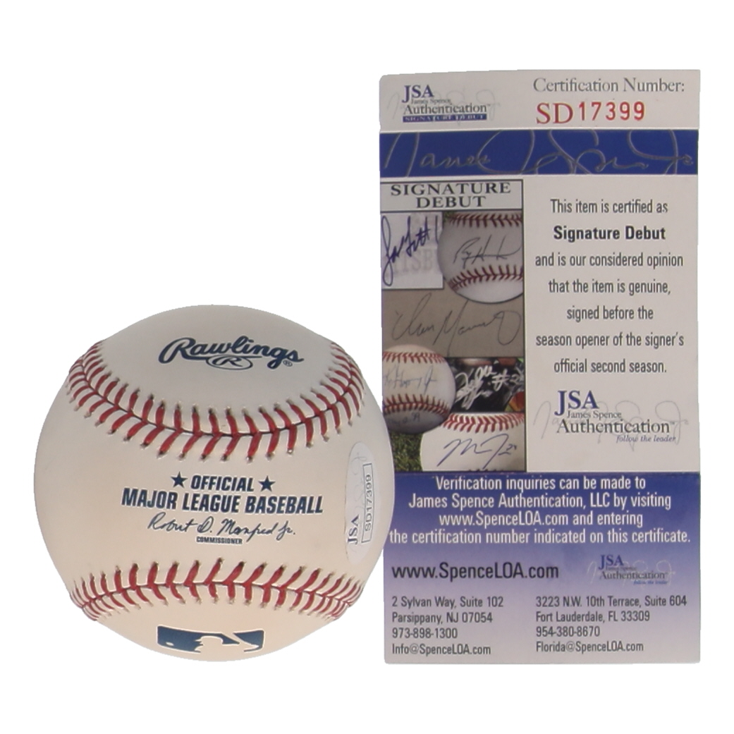 The autograph(s) includes an official James Spence Authentication (JSA) "Signature Debut" hologram and COA. "Signature Debut" is the autographed memorabilia equivalent to a rookie card. The JSA definition of a "Signature Debut" is as follows: "Any item that is autographed and received by JSA prior to the last game of the signer's official rookie season.