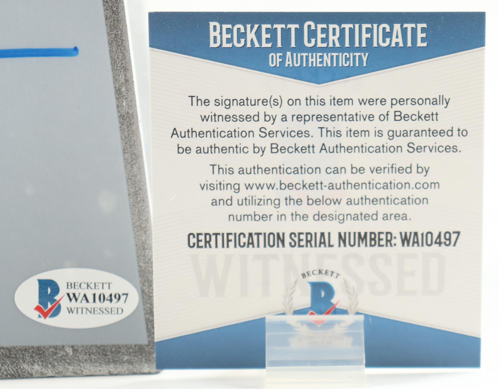 The autograph includes an official Beckett Authentication Services serially-numbered hologram and matching COA for authenticity purposes. The signing of this item was witnessed by Beckett.