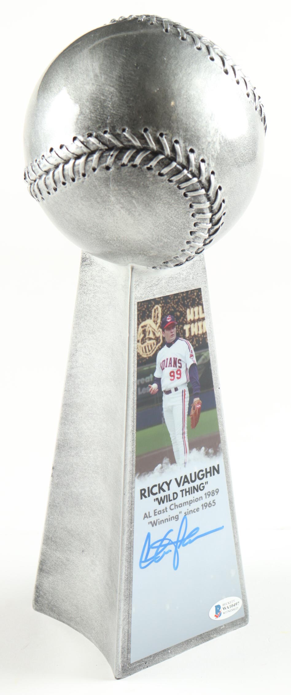 Replica Championship Trophy measures approximately 14" in height and has been hand-signed by Charlie Sheen (Rick 'Wild Thing' Vaughn).