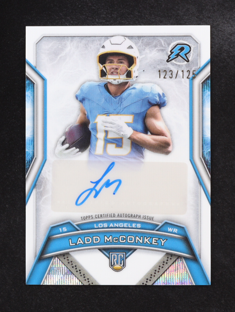 Ladd McConkey 2024 Topps Resurgence Resurgence Rookie Signatures White Surge #RRSLM RC #123/125