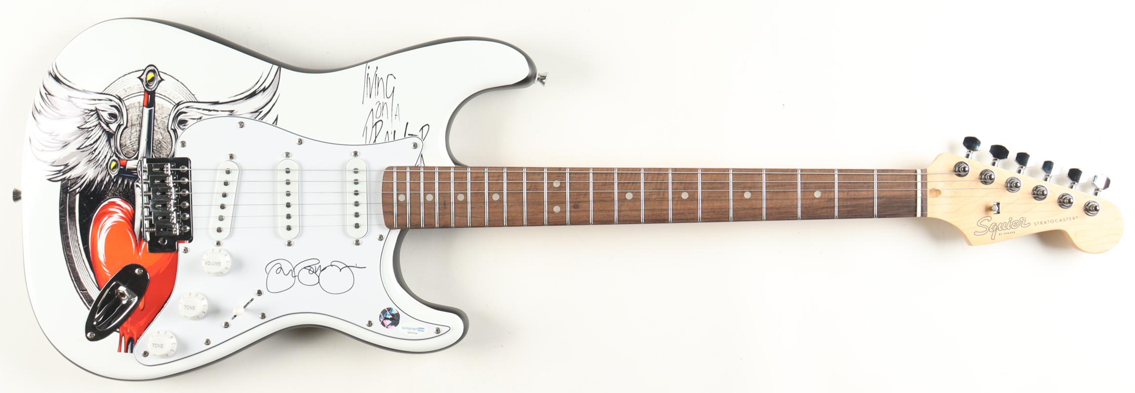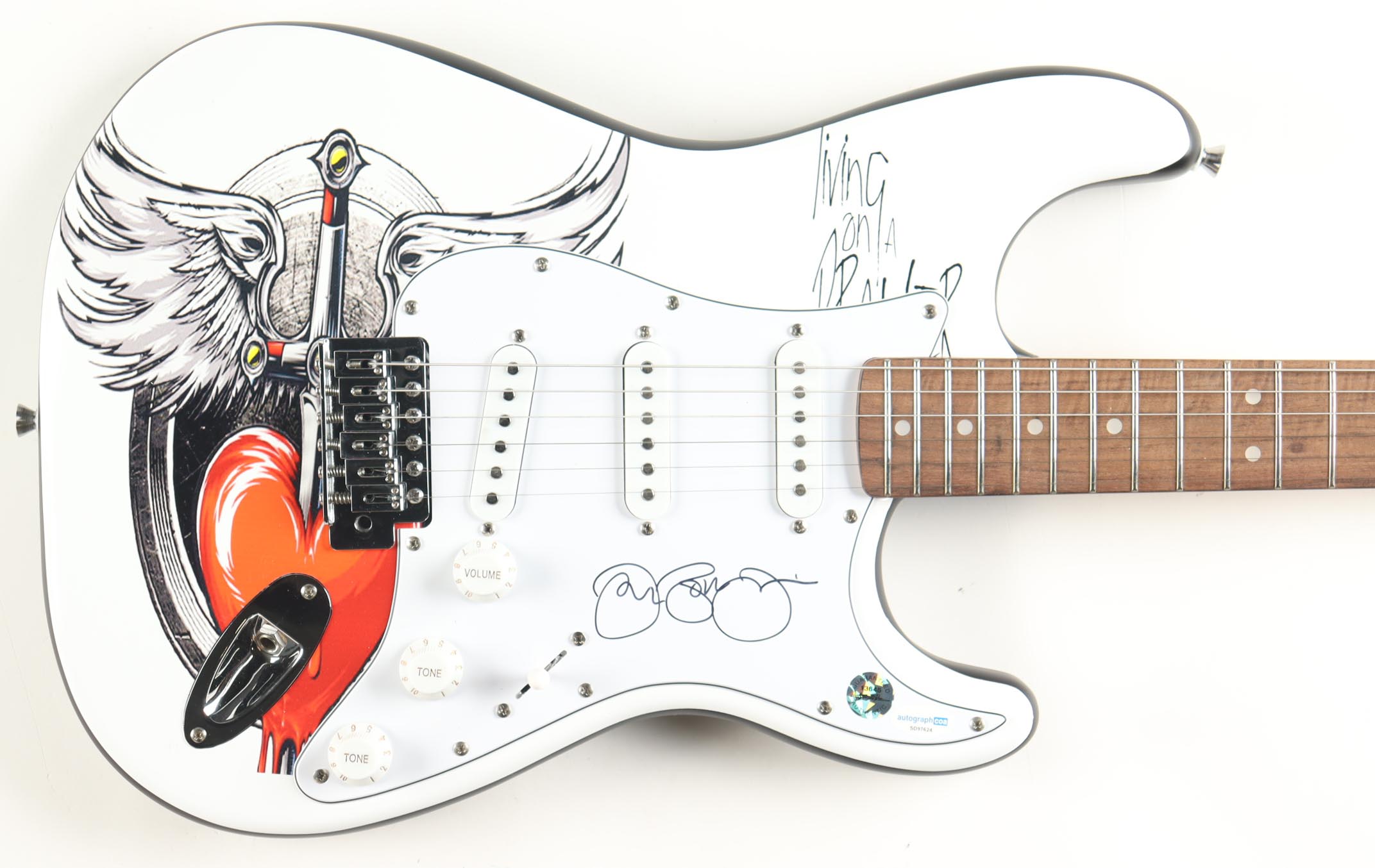 Squier by Fender Stratocaster Full-size electric guitar measures approximately 39" in length and is hand-signed by Jon Bon Jovi.