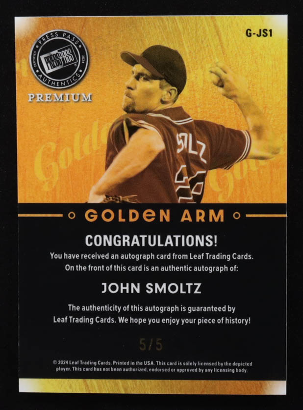 John Smoltz 2024 Press Pass Premium Golden Arm Autographs Purple #G-JS1 #5/5
