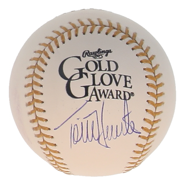 Rawlings Gold Glove Award baseball has been hand-signed by Torii Hunter (Minnesota Twins). Please note, there is staining on the baseball.