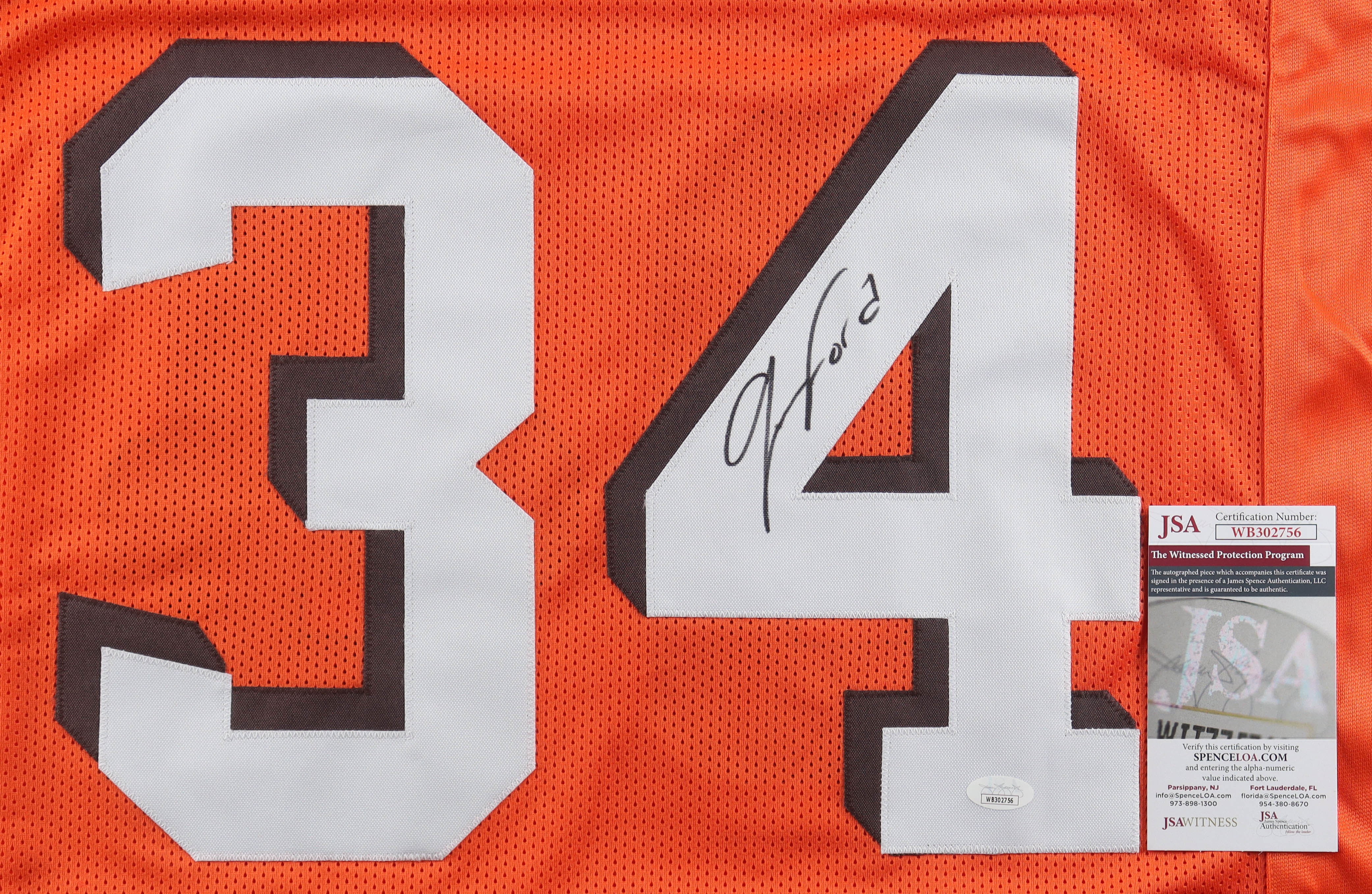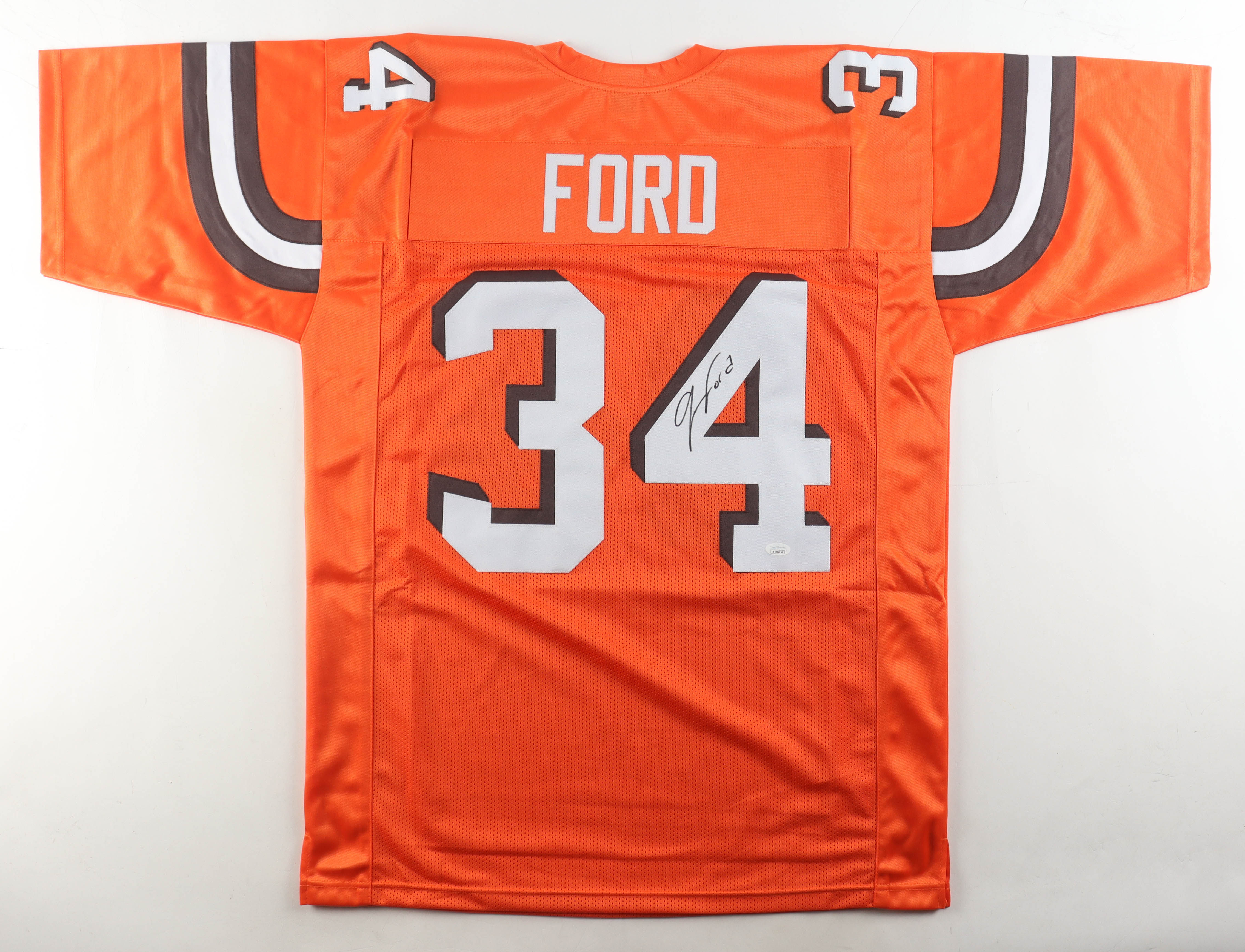 Custom jersey with everything sewn on, size XL. Hand-signed by Jerome Ford.