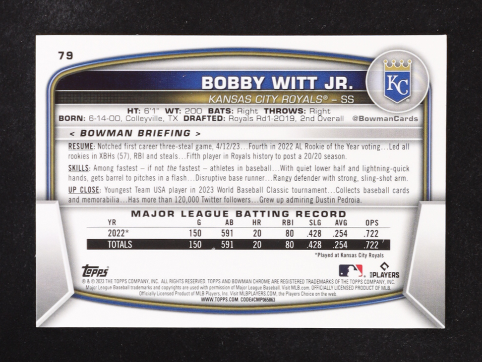 Bobby Witt Jr. 2023 Bowman Chrome #79