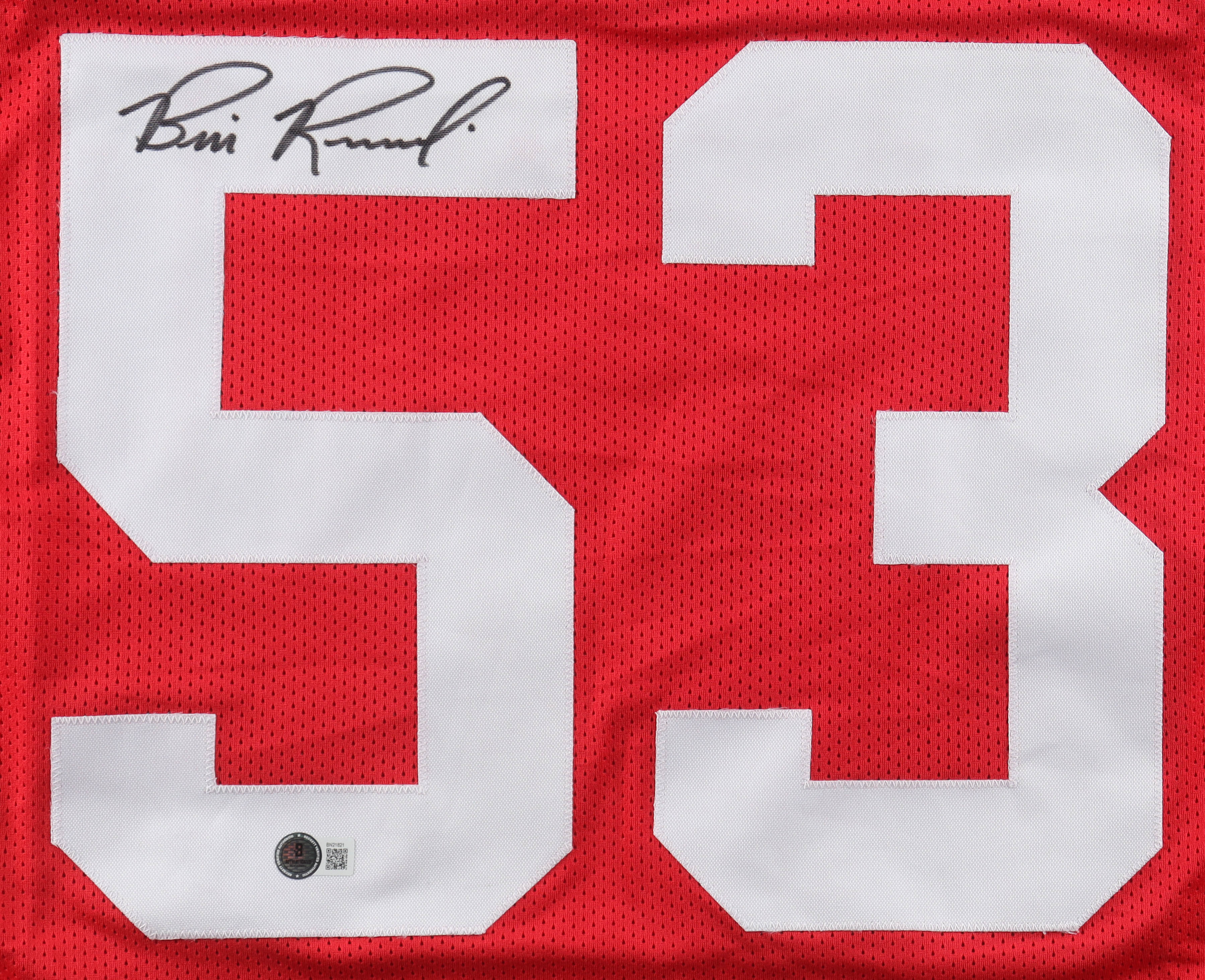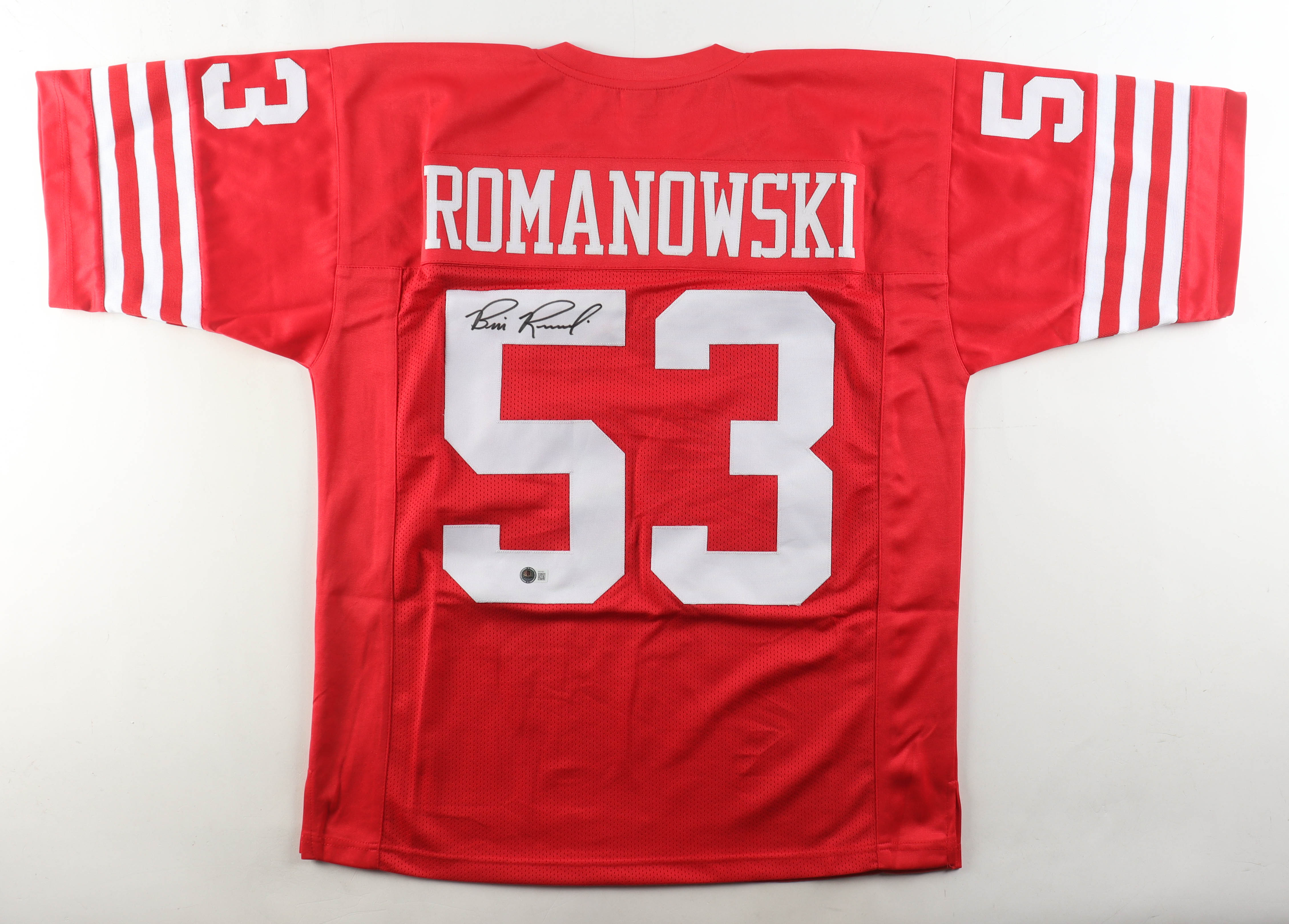 Custom jersey with everything sewn on, size XL. Hand-signed by Bill Romanowski.