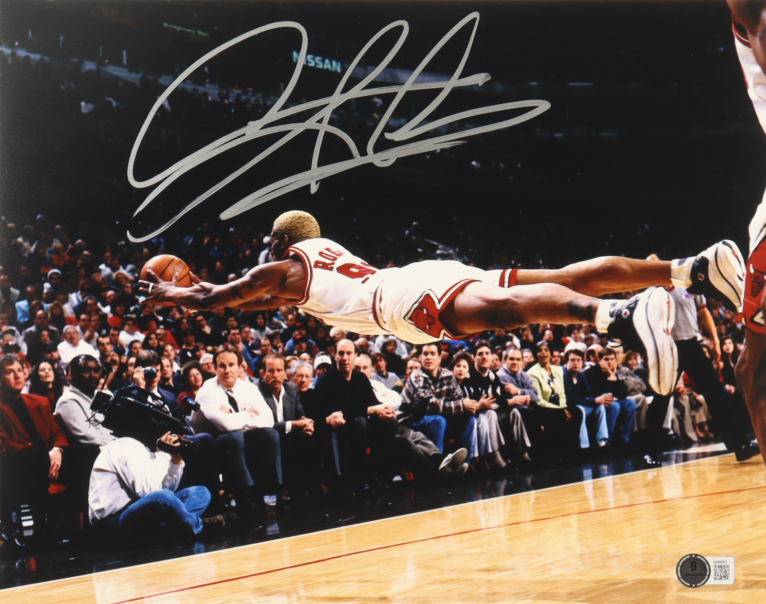 Photo measures 11" x 14" in size and has been hand-signed by Dennis Rodman (Chicago Bulls, HOF).