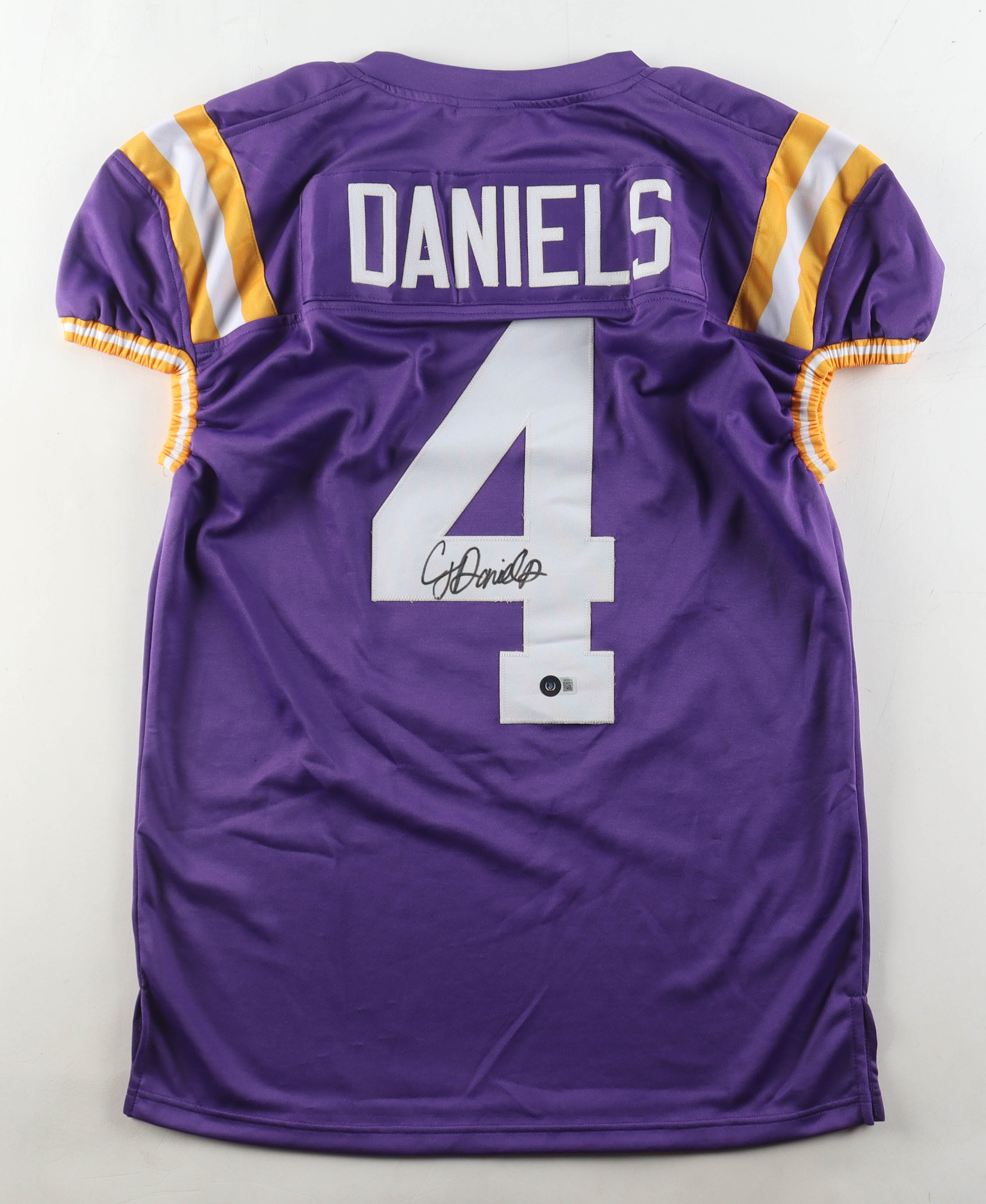 Custom jersey with everything sewn on, size XL. Hand-signed by CJ Daniels (LSU Tigers).