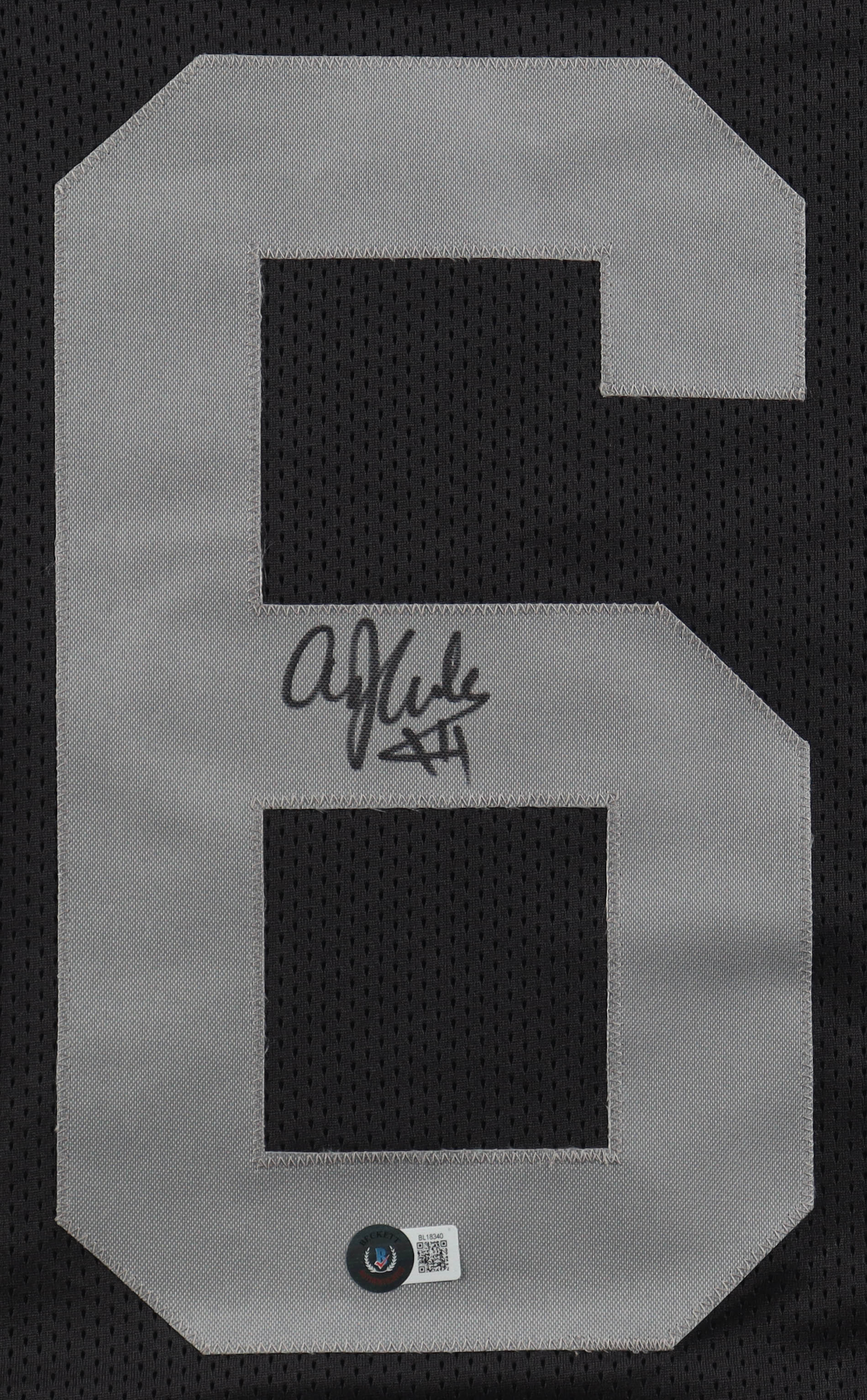 Custom jersey. Everything sewn on, size XL. Hand-signed by A. J. Cole III.