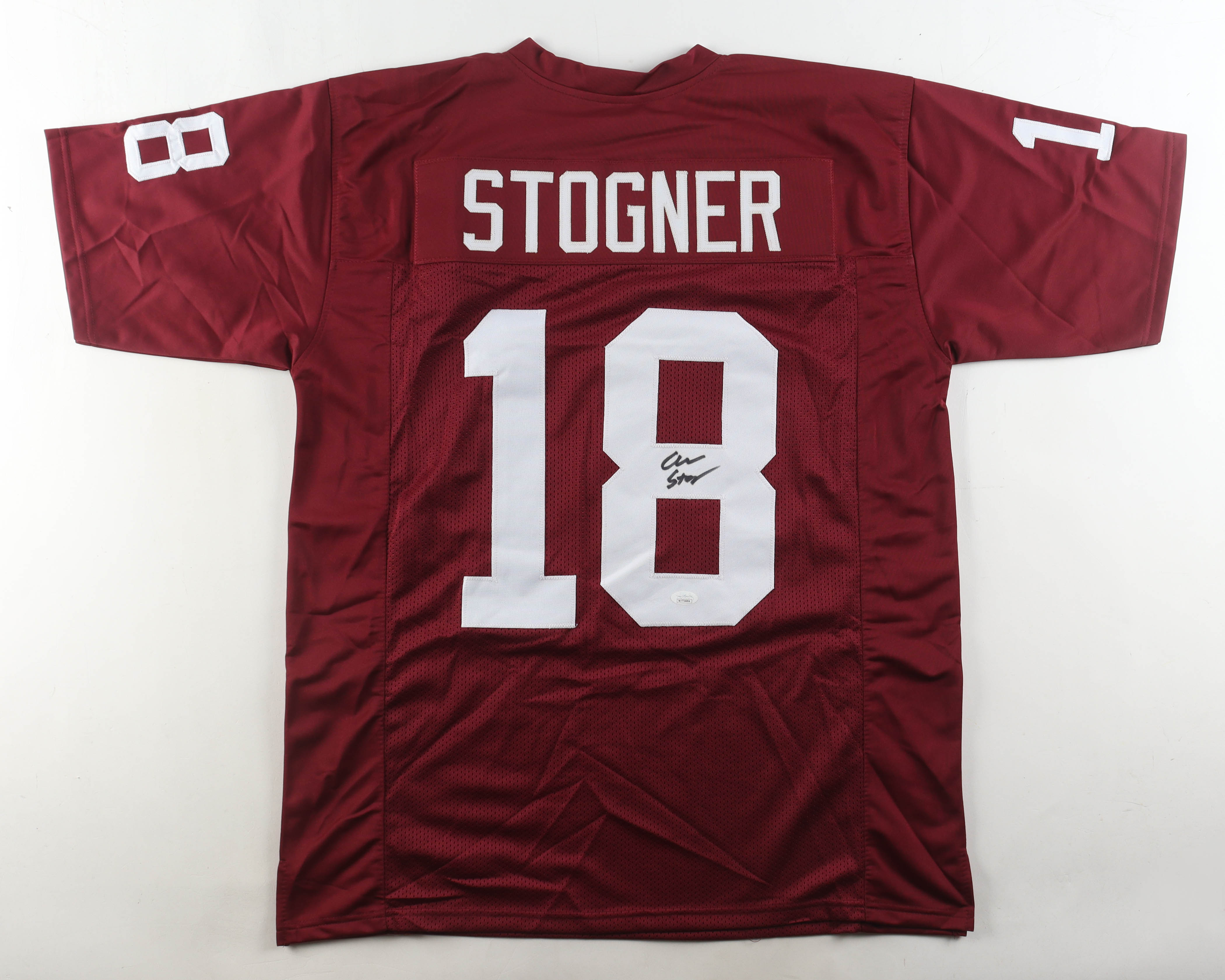 Custom jersey with everything sewn on, size XL. Hand-signed by Austin Stogner (Oklahoma Sooners).