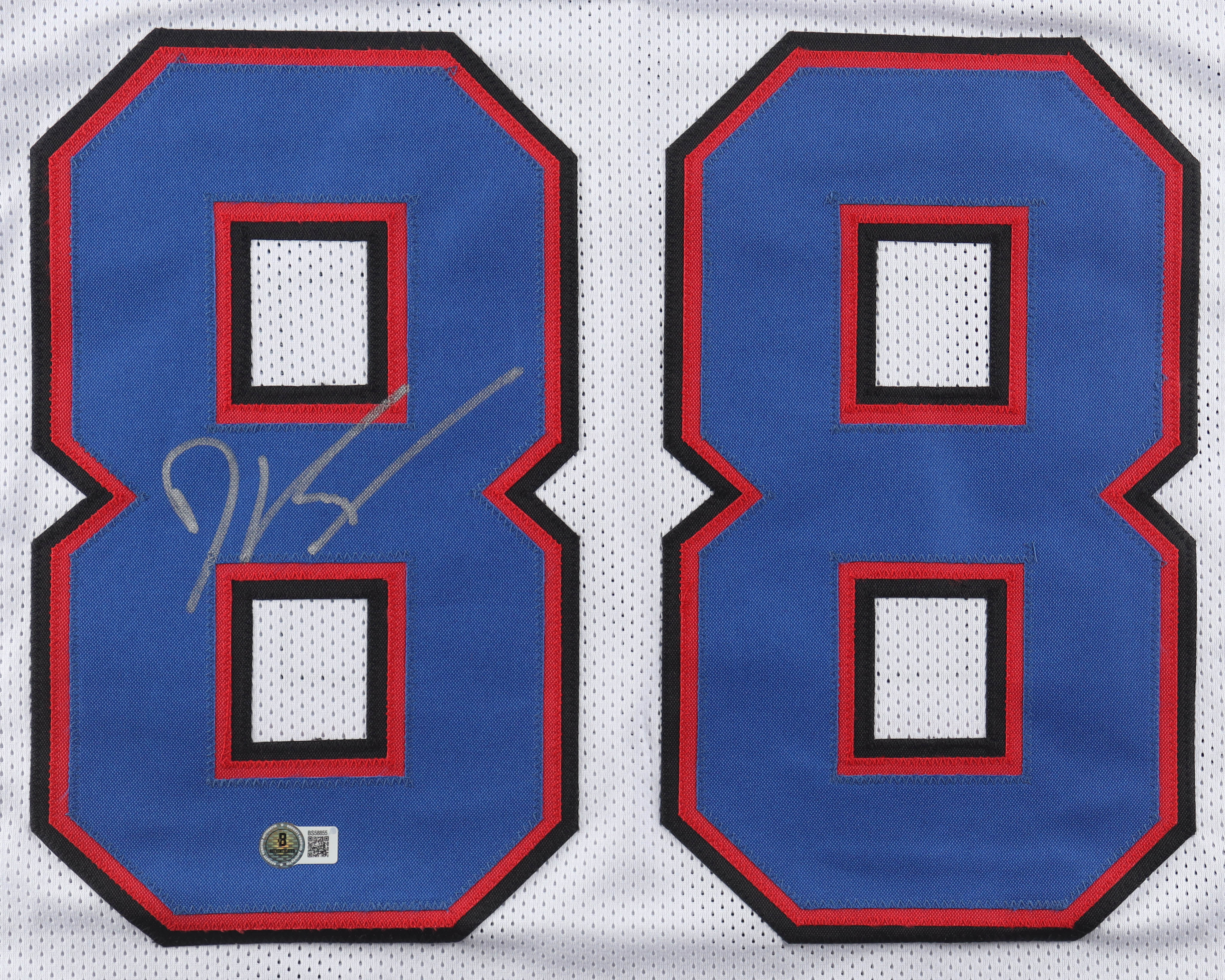 Custom jersey with everything sewn on, size XL. Hand-signed by Dawson Knox.