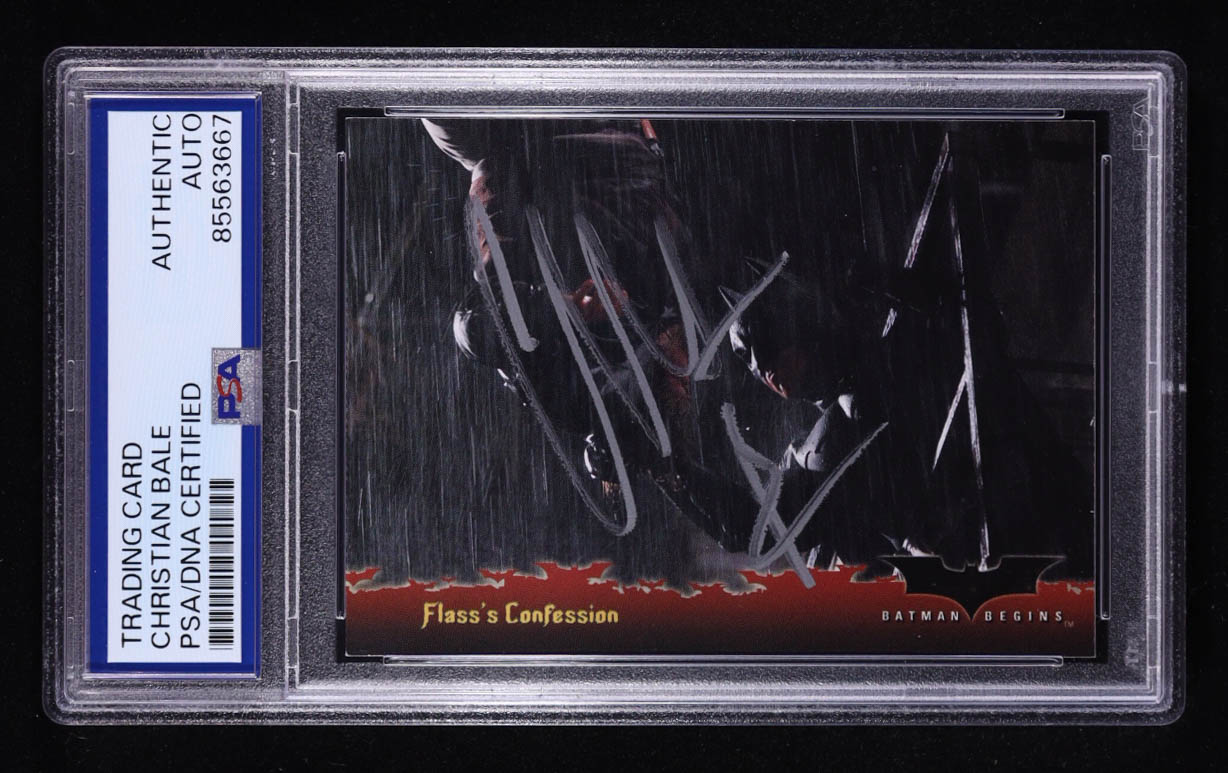 Christian Bale Signed 2005 Topps Batman Begins Movie #48 Flass's Confession (PSA Authentic)