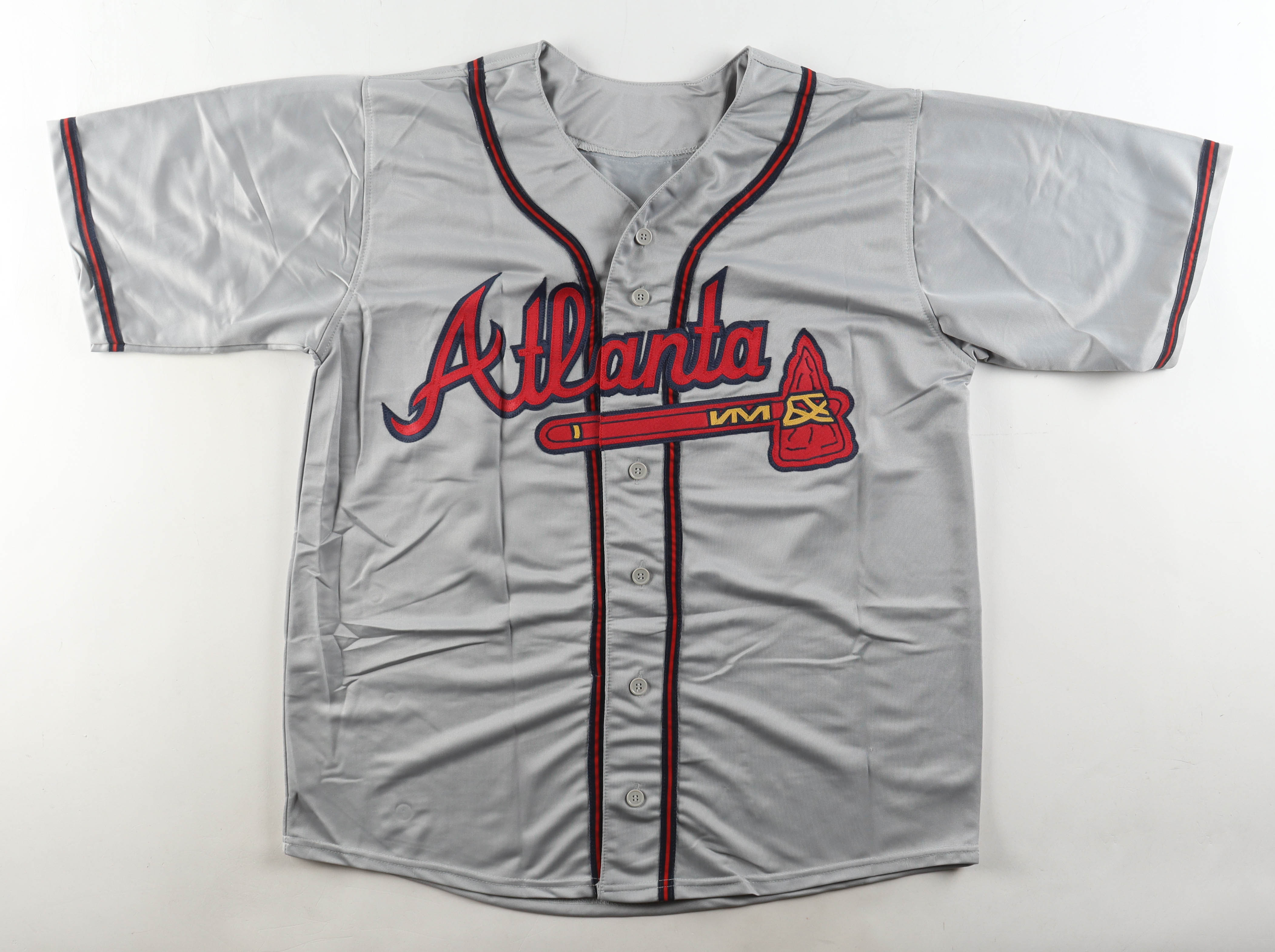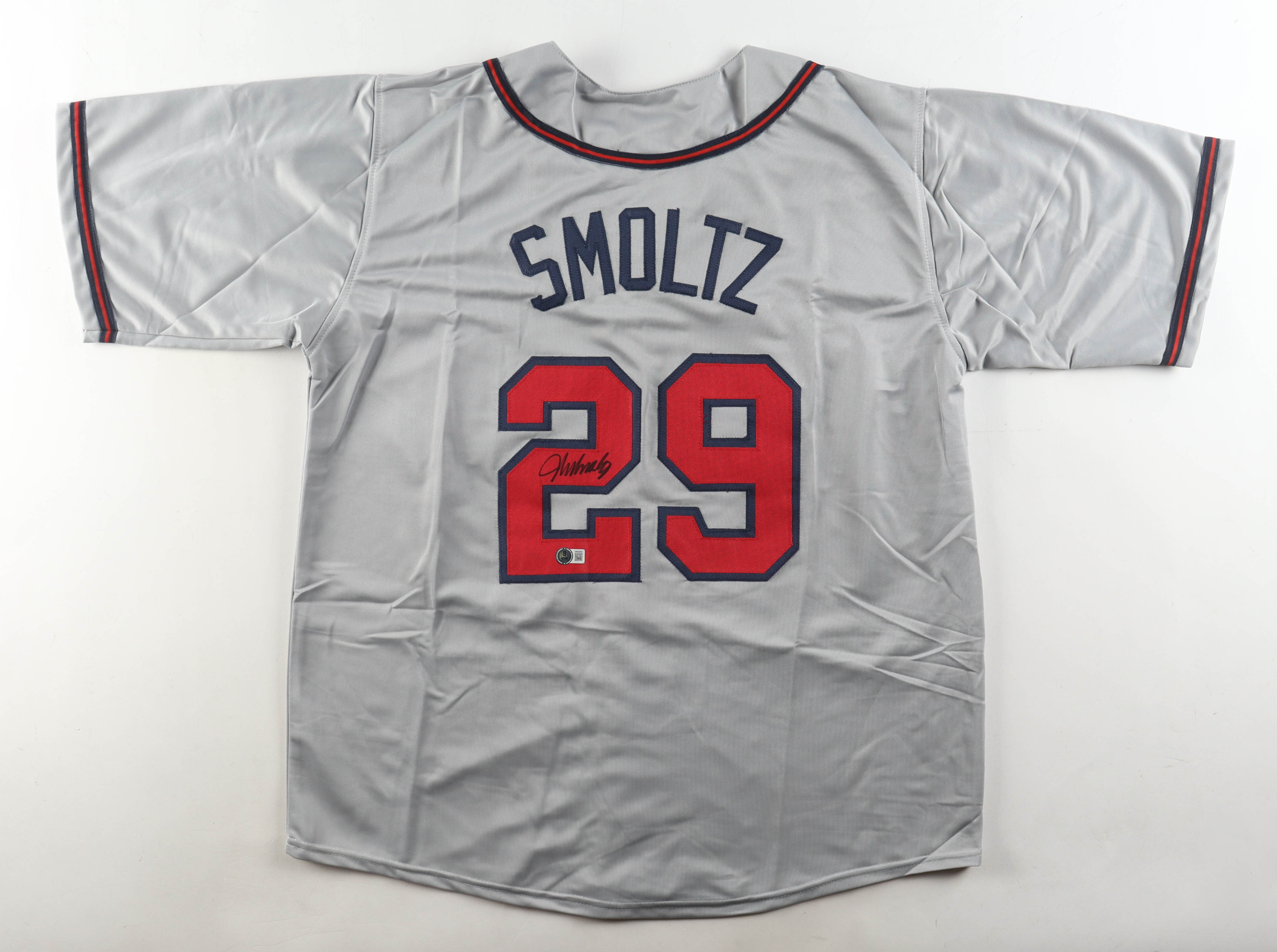 Custom jersey with everything sewn on, size XL. Hand-signed by John Smoltz (Atlanta Braves, HOF).