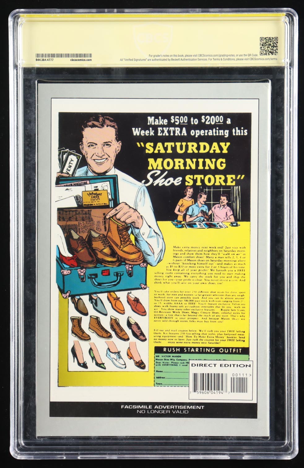 The item / autograph(s) has been authenticated and encapsulated by Comic Book Certification Services (CBCS) for authenticity purposes. The signing of this item was witnessed by CBCS.
