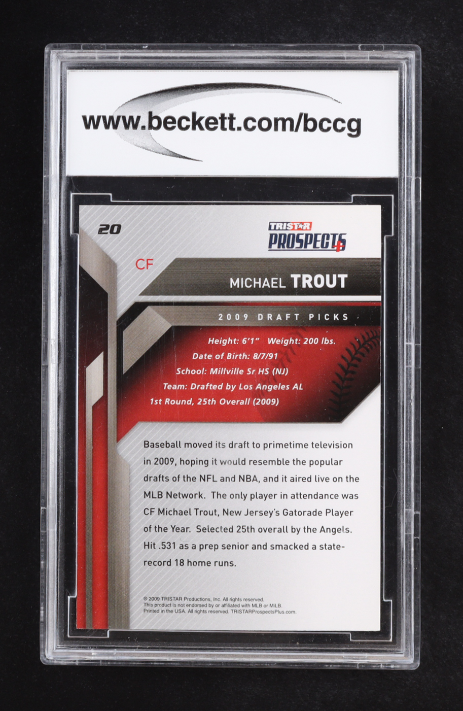 Mike Trout 2009 TRISTAR Prospects Plus #20 RC (BCCG 10)