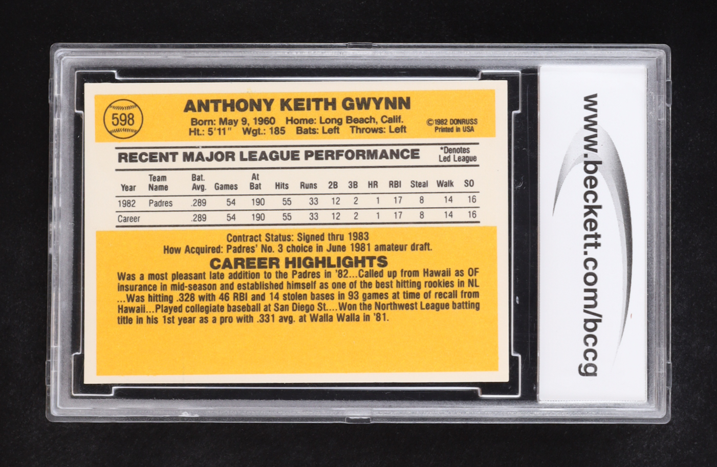 Tony Gwynn 1983 Donruss #598 RC (BCCG 9)