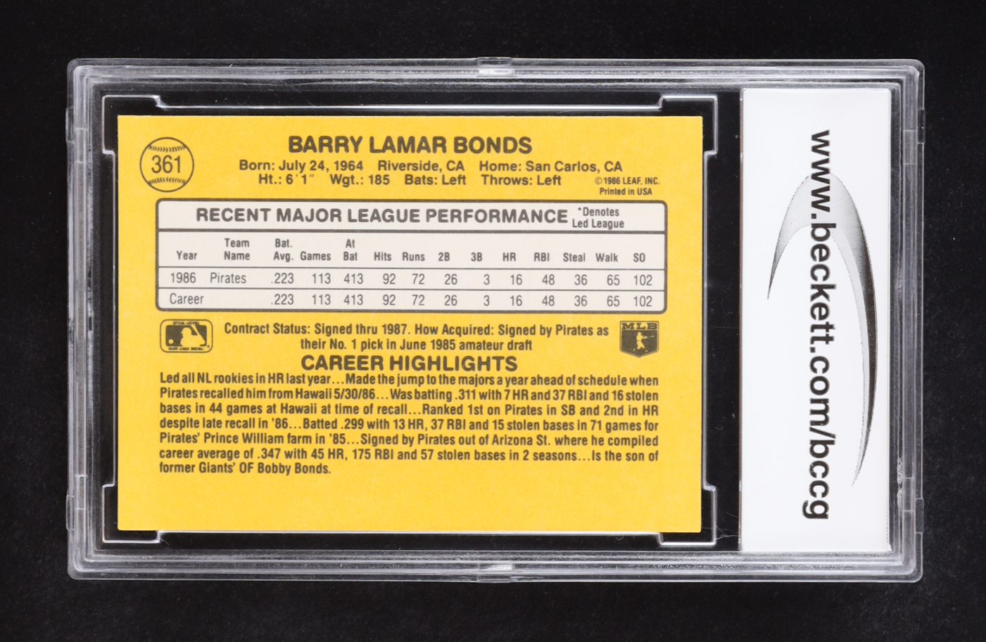 Barry Bonds 1987 Donruss #361 RC (BCCG 10)