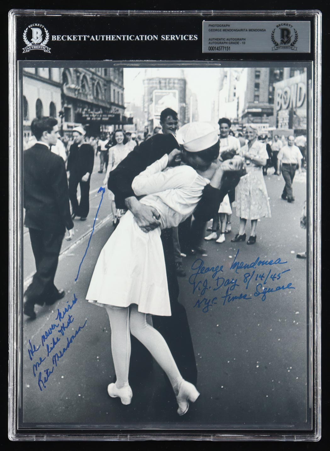 George Mendonsa & Rita Mendonsa Signed WWII 8x10 Photo with Multiple Inscriptions (Beckett | Autograph Grade BGS 10)
