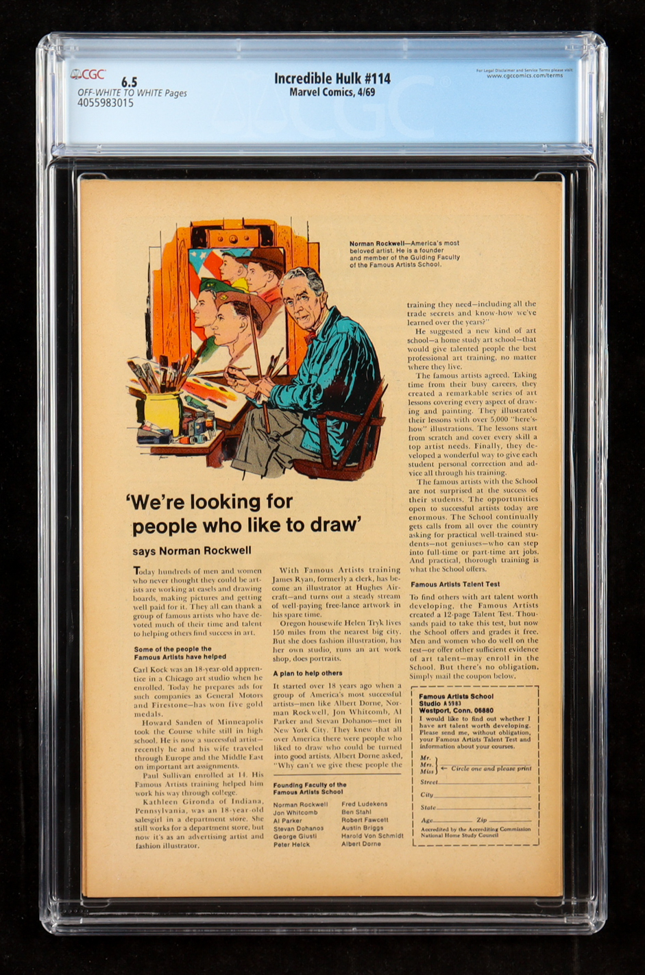 1969 "The Incredible Hulk" Issue #6.5 Marvel Comic Book (CGC 6.5)