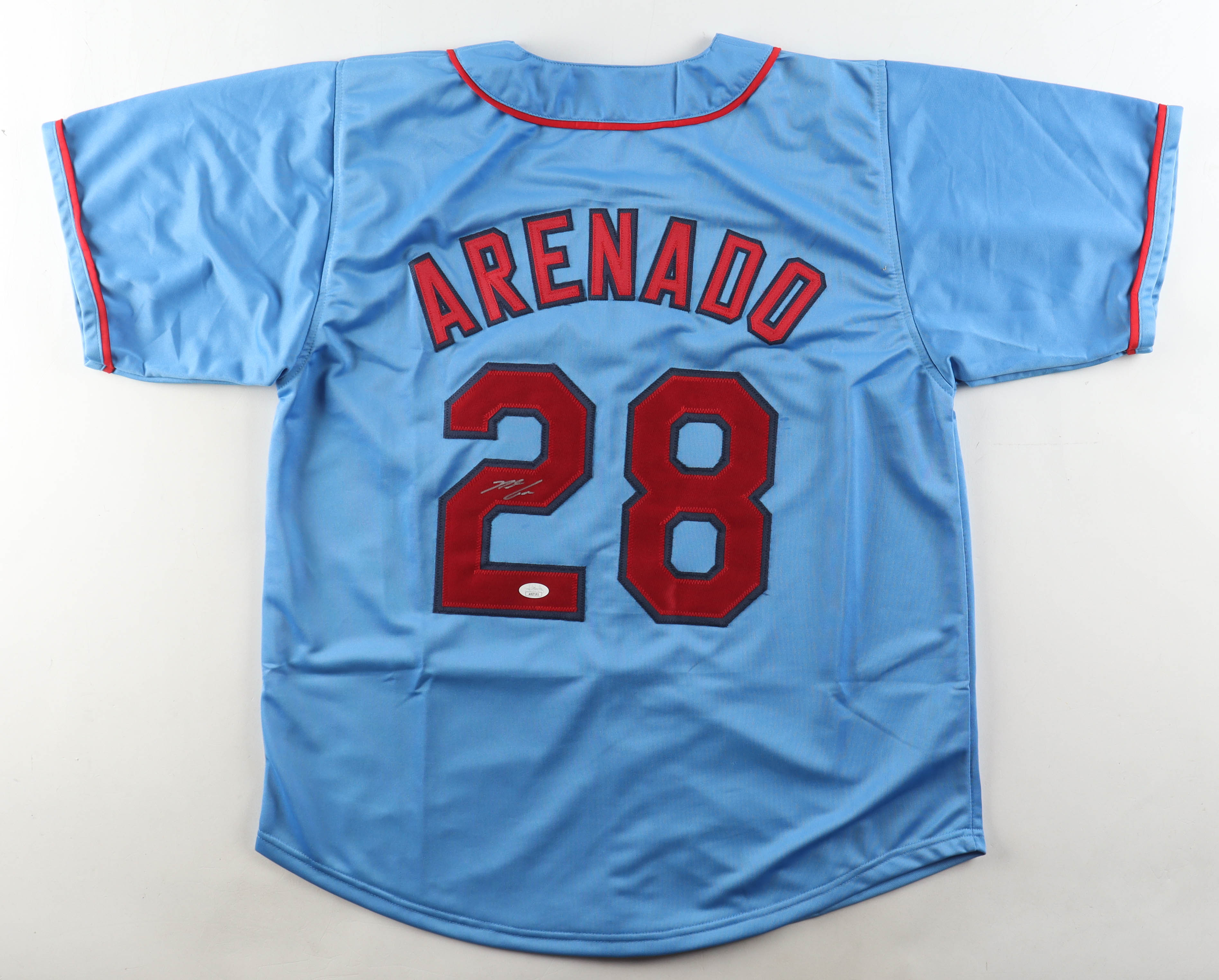 Custom jersey with everything sewn on, size XL. Hand-signed by Nolan Arenado.