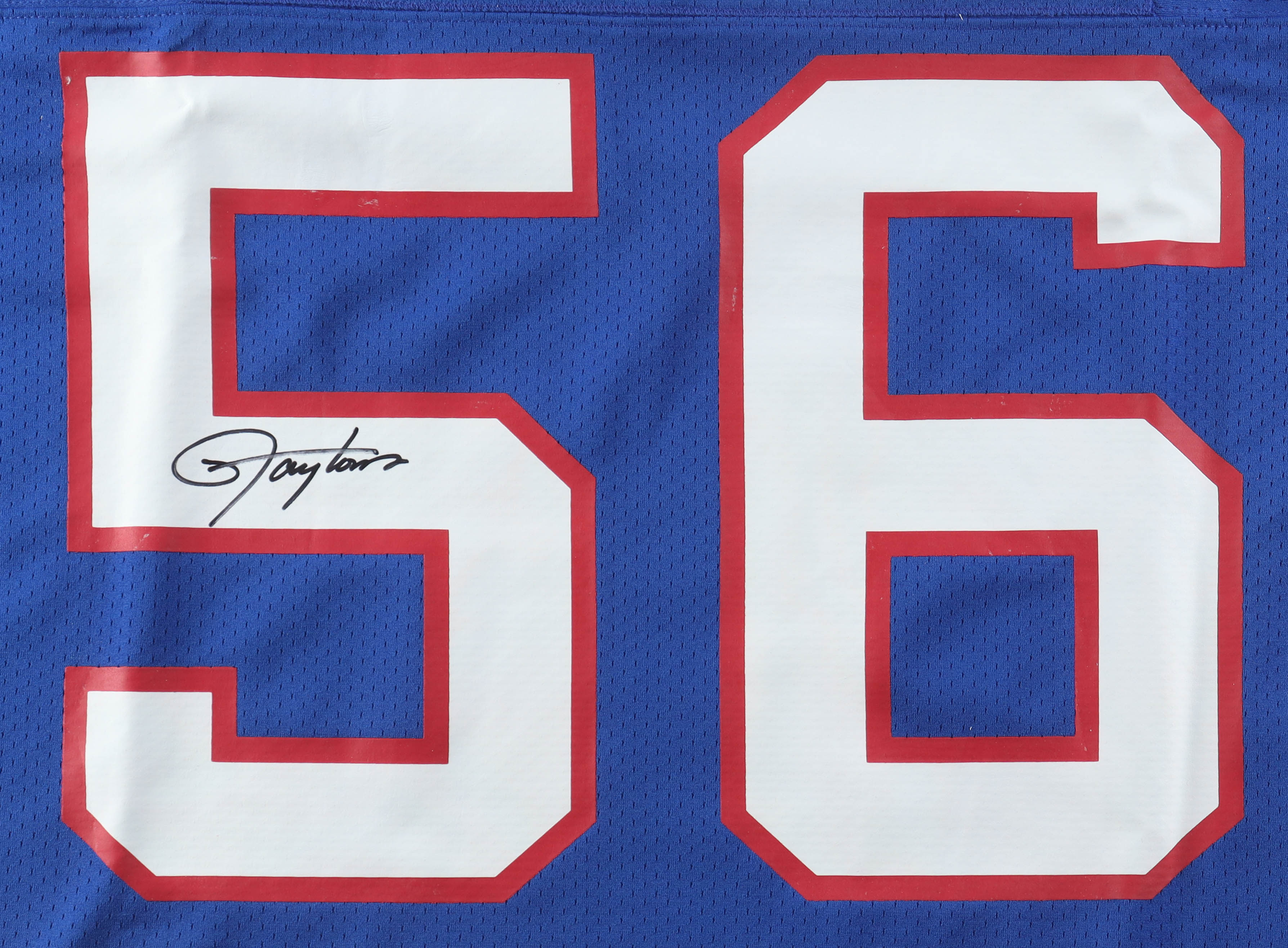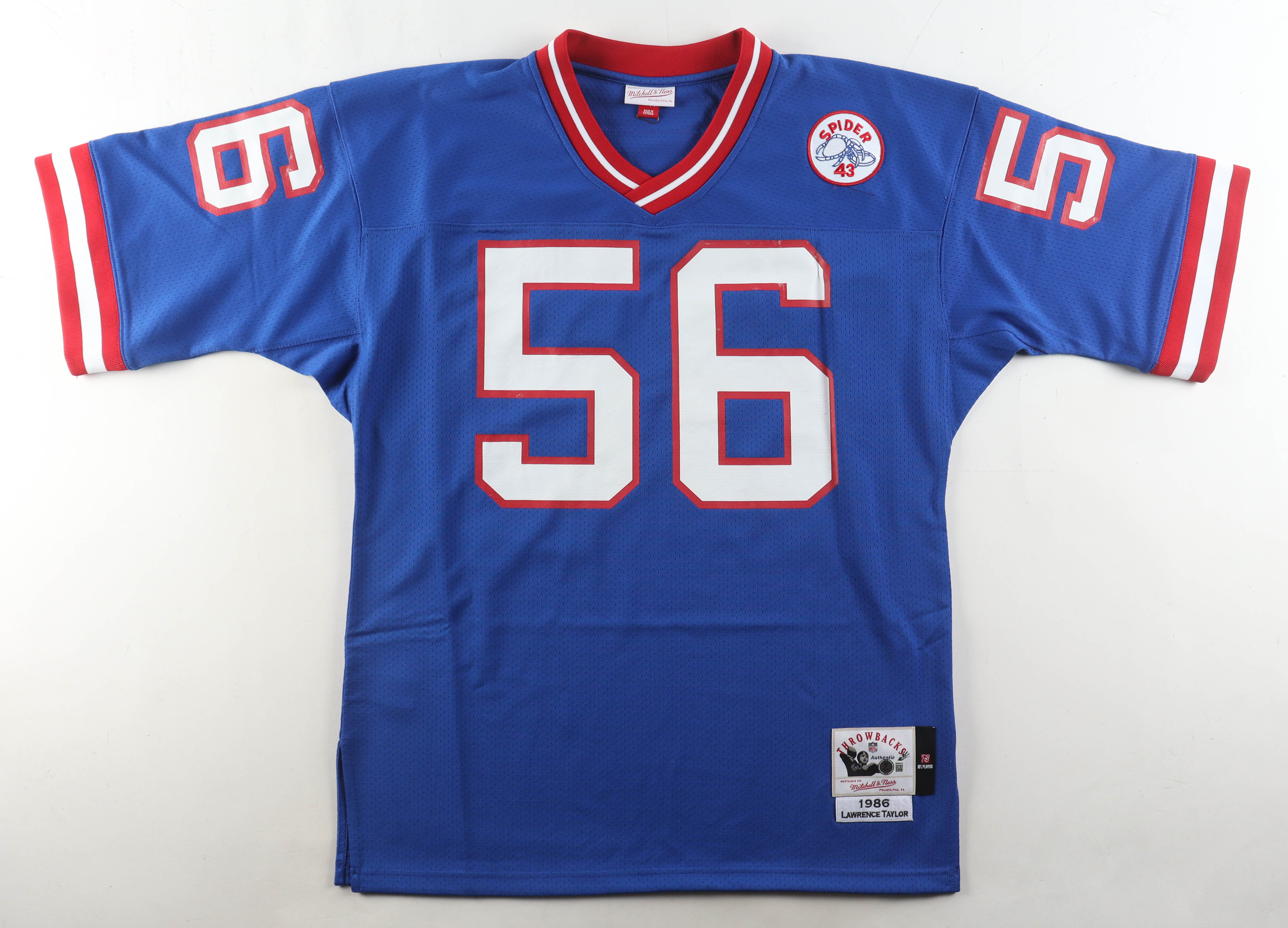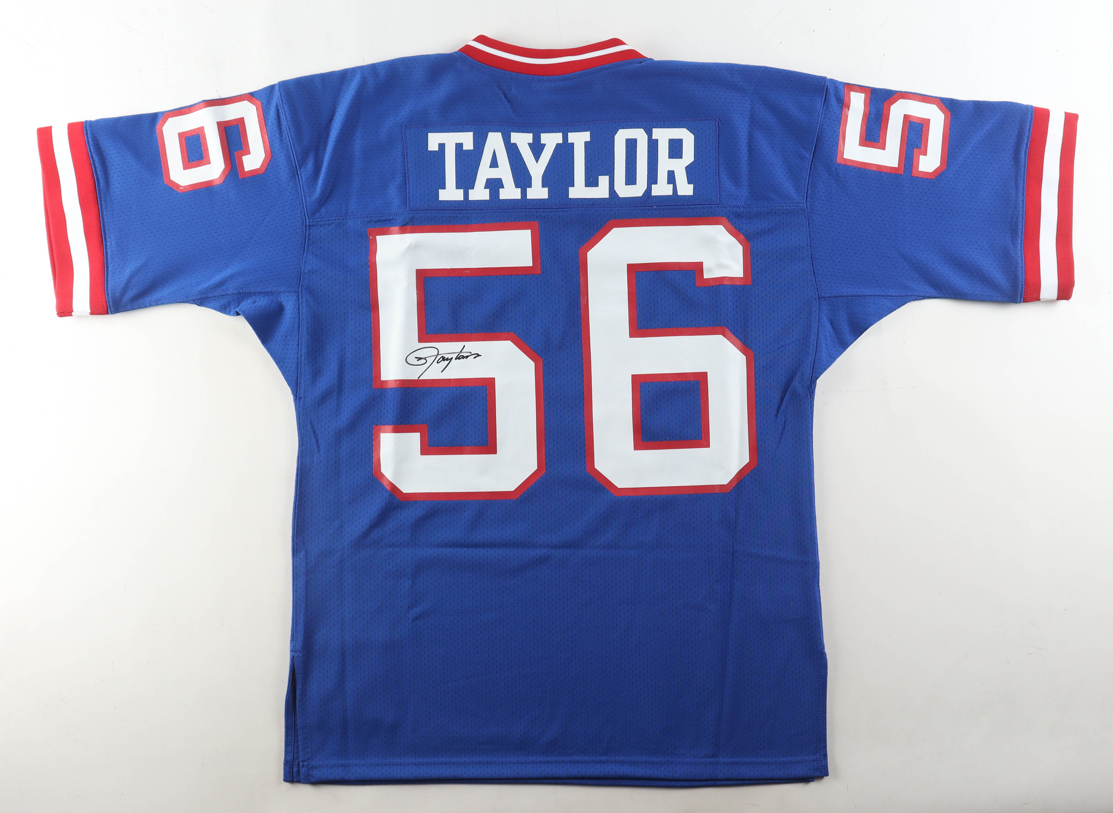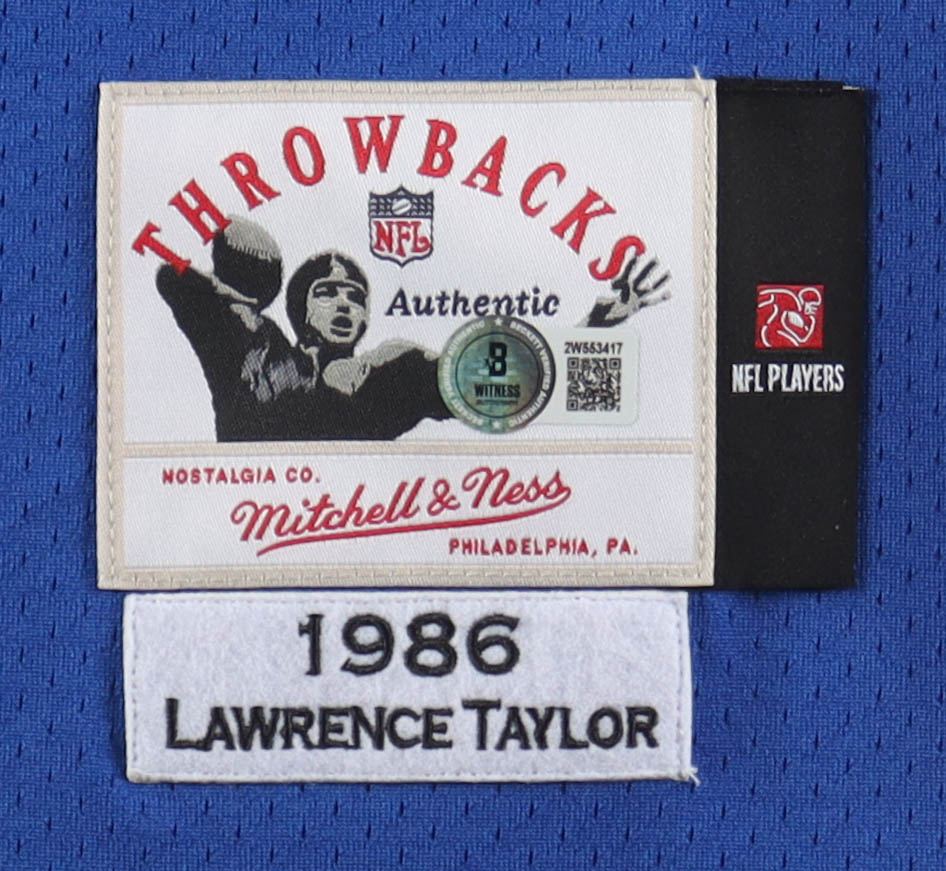 Mitchell & Ness authentic jersey with everything pressed on, size XL. Hand-signed by Lawrence Taylor (New York Giants, HOF).