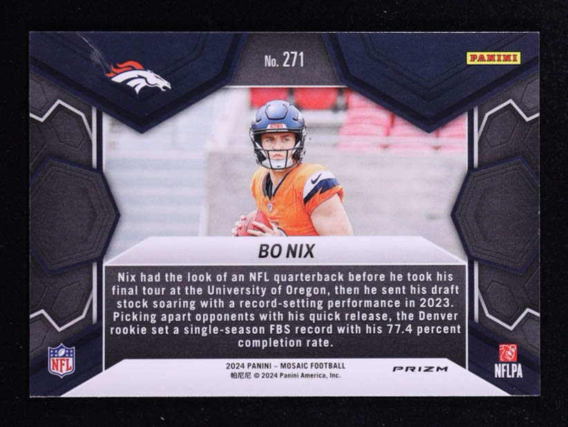 Bo Nix 2024 Panini Mosaic Mosaic Green #271 DEB RC
