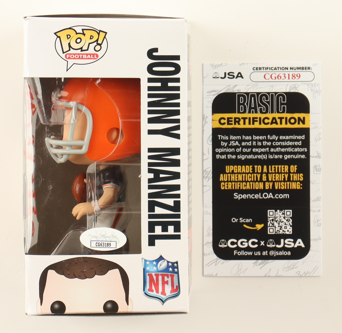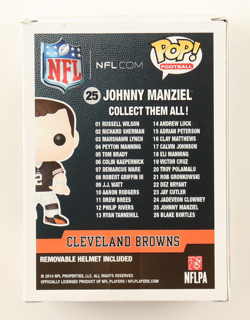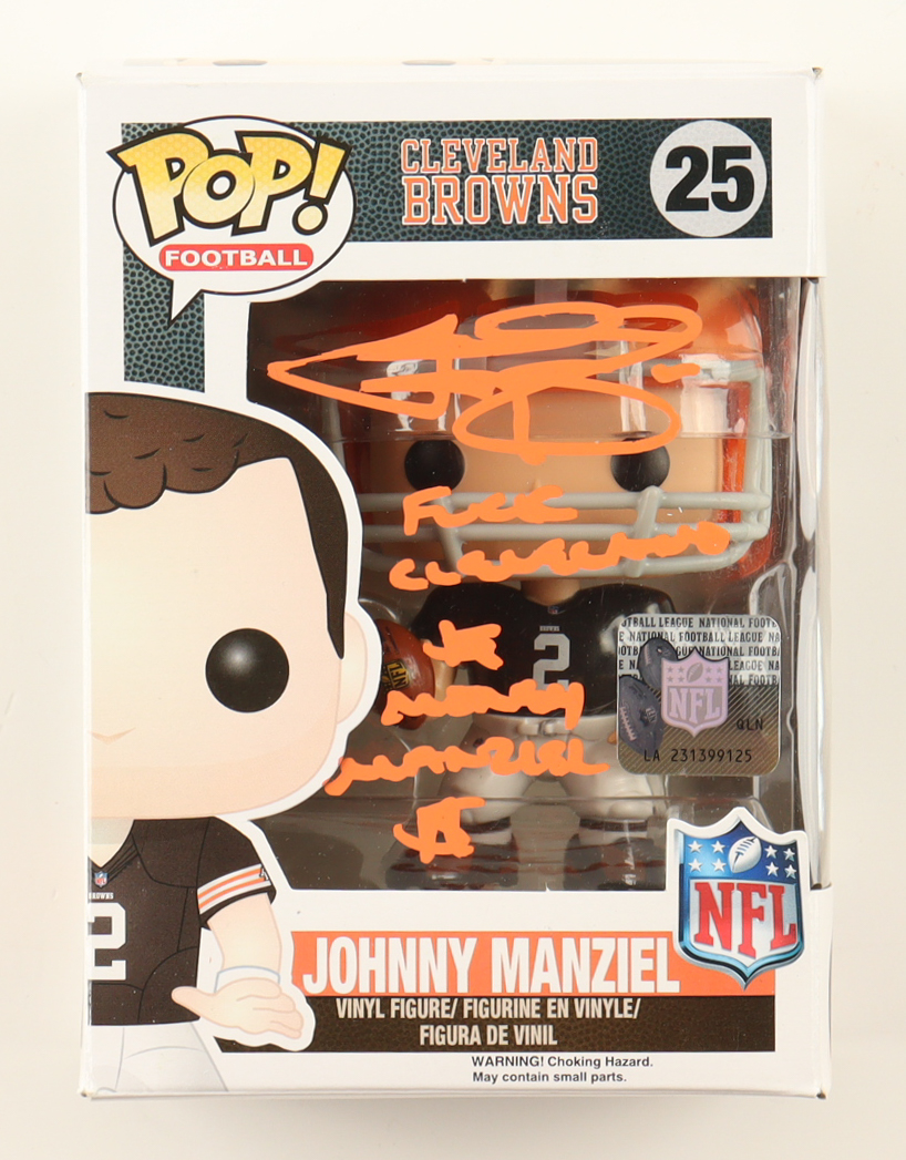 Funko Pop! vinyl figure measures approximately 4" in height. Hand-signed and inscribed by Johnny Manziel. Please note there is damages to the packaging, see photos for more details.