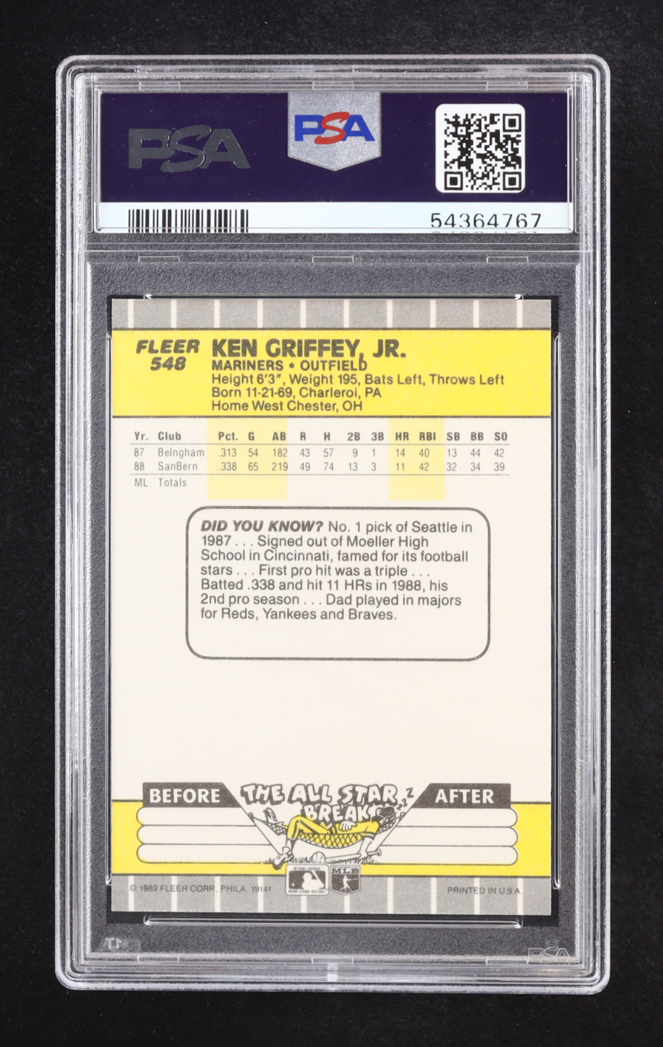 Ken Griffey Jr. 1989 Fleer #548 RC (PSA 9)