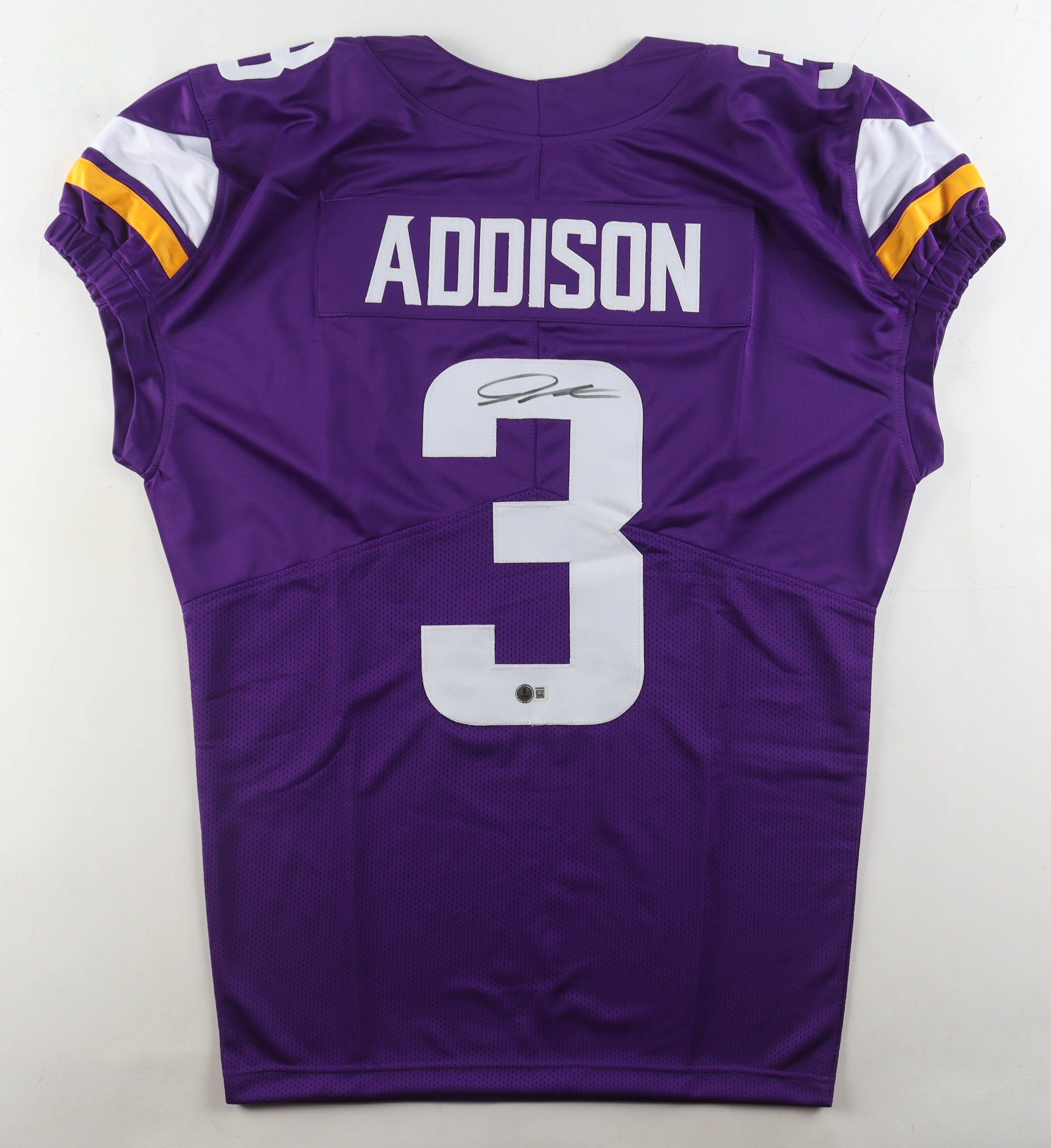 Custom jersey. Everything is sewn on, size XL. Hand-signed by Jordan Addison.