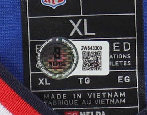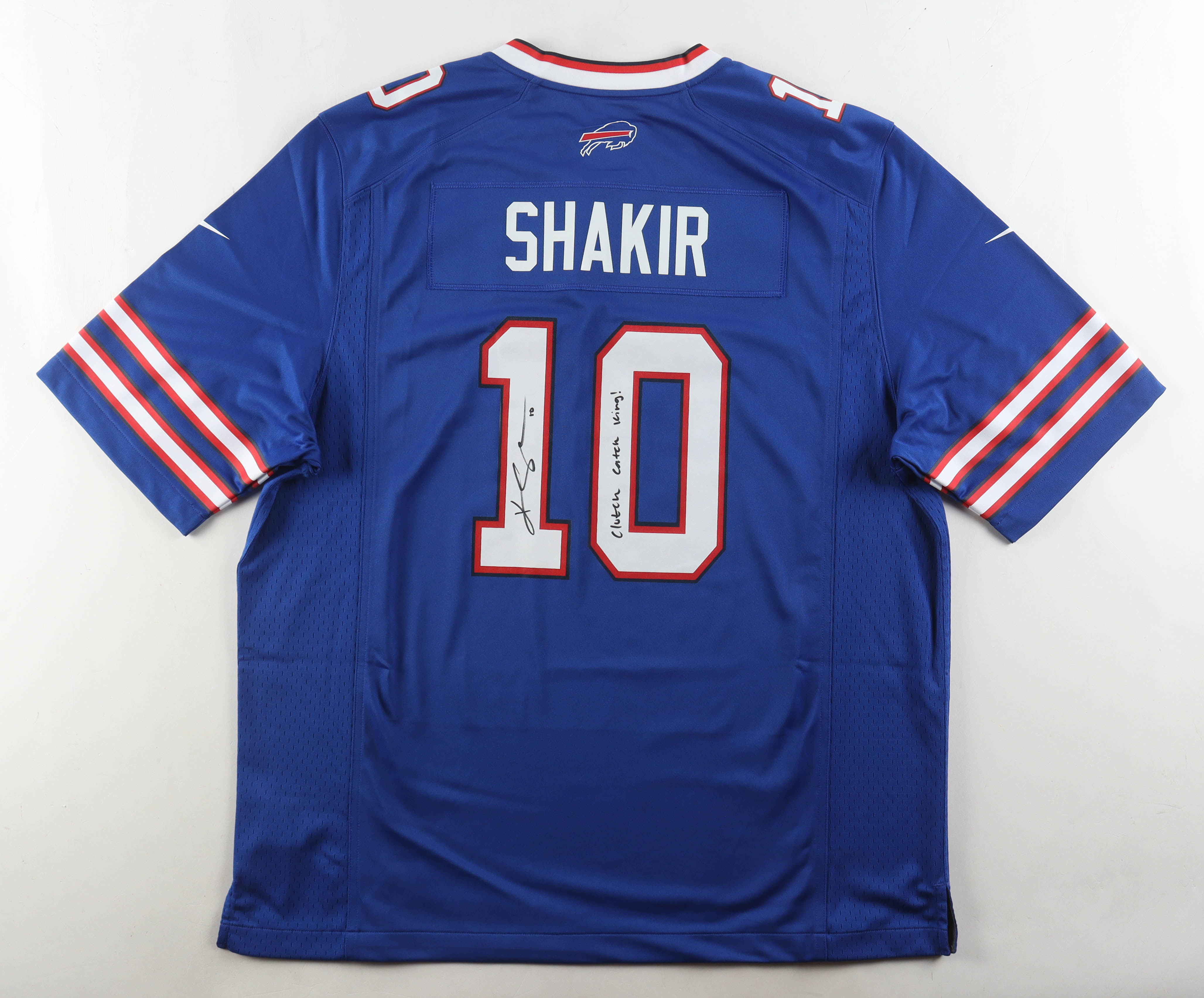 Nike authentic jersey with everything pressed on, size XL. Hand-signed and inscribed by Khalil Shakir (Buffalo Bills).