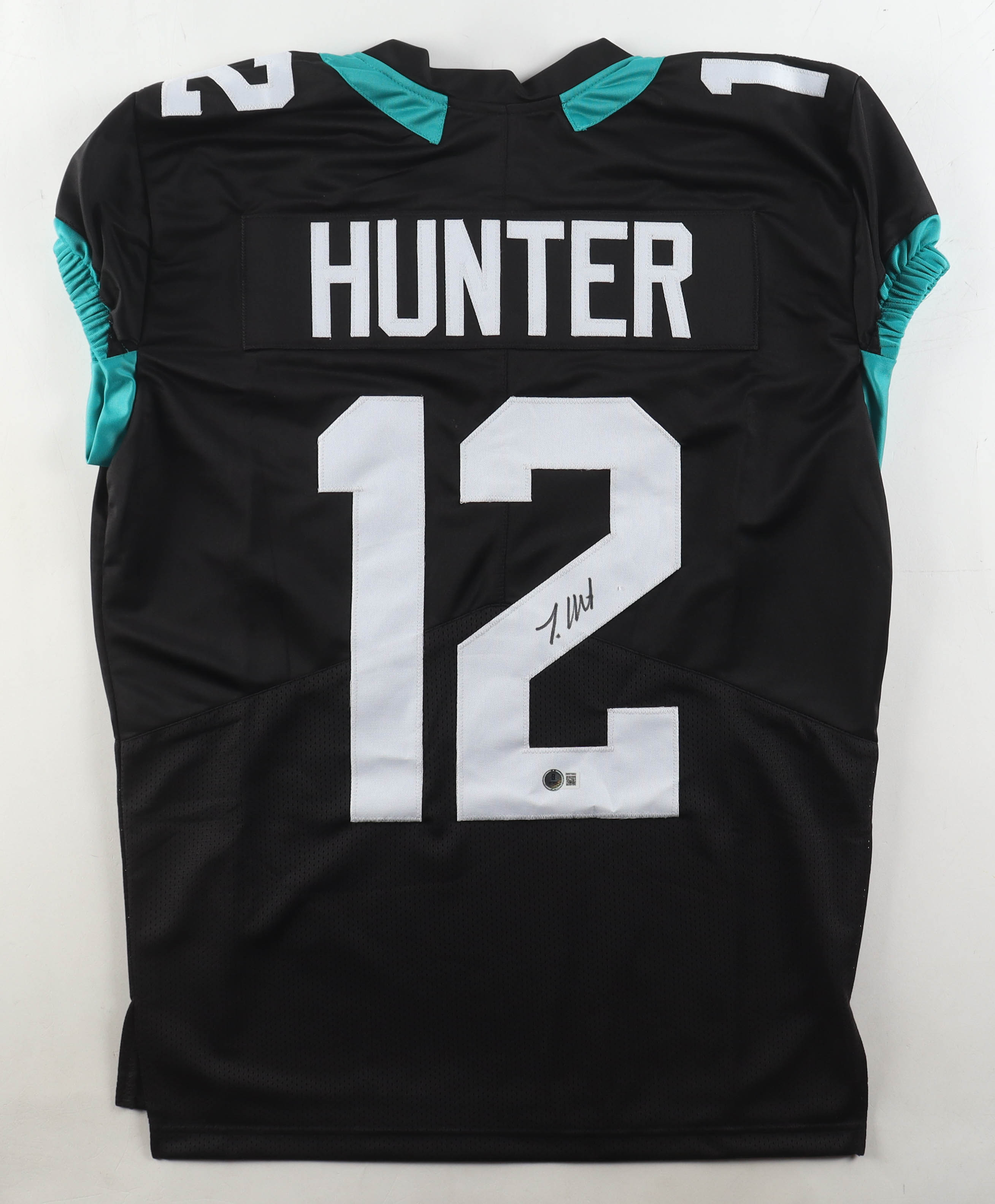 Custom jersey with everything sewn on, size XL. Hand-signed by Travis Hunter (Jacksonville Jaguars).