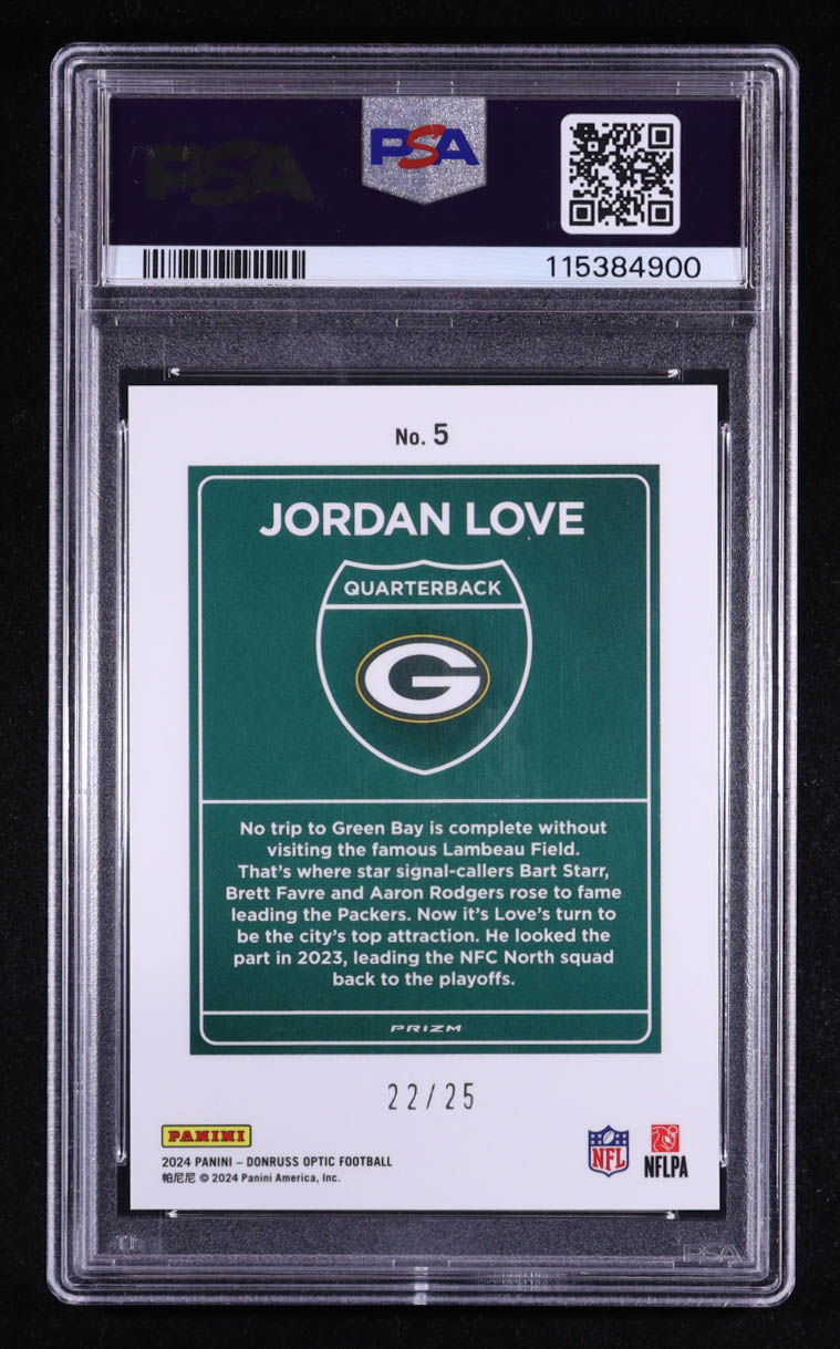 Jordan Love 2024 Donruss Optic Downtown Black Pandora #5 #22/25 (PSA 10)