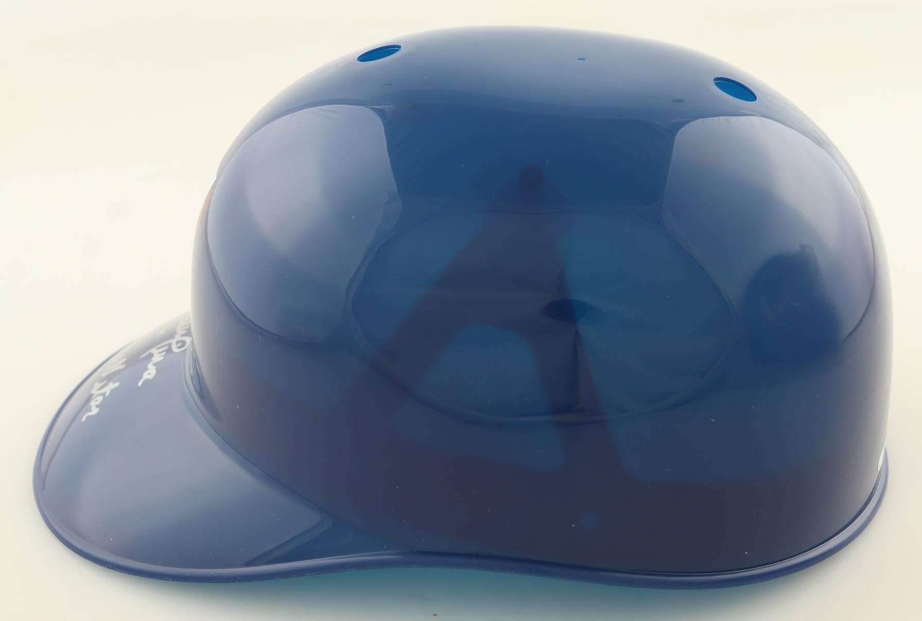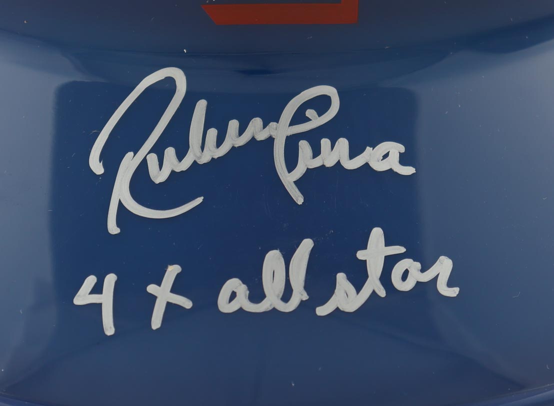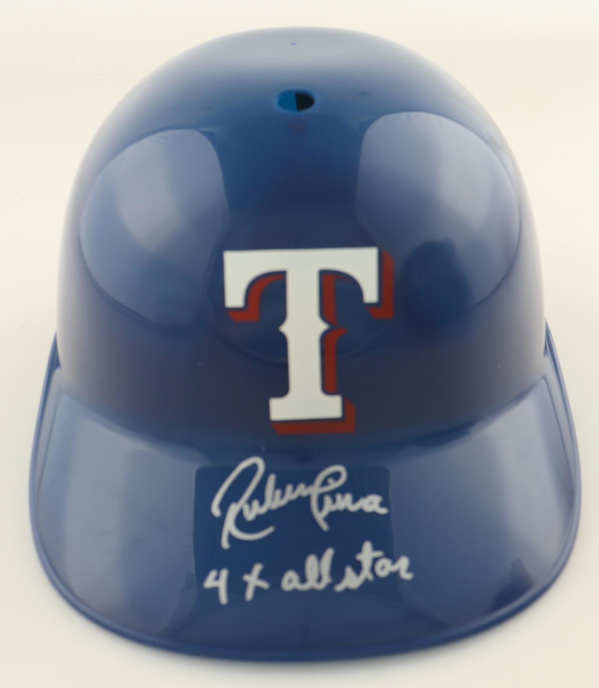 Texas Rangers full-size replica batting helmet has been hand-signed by Ruben Sierra.