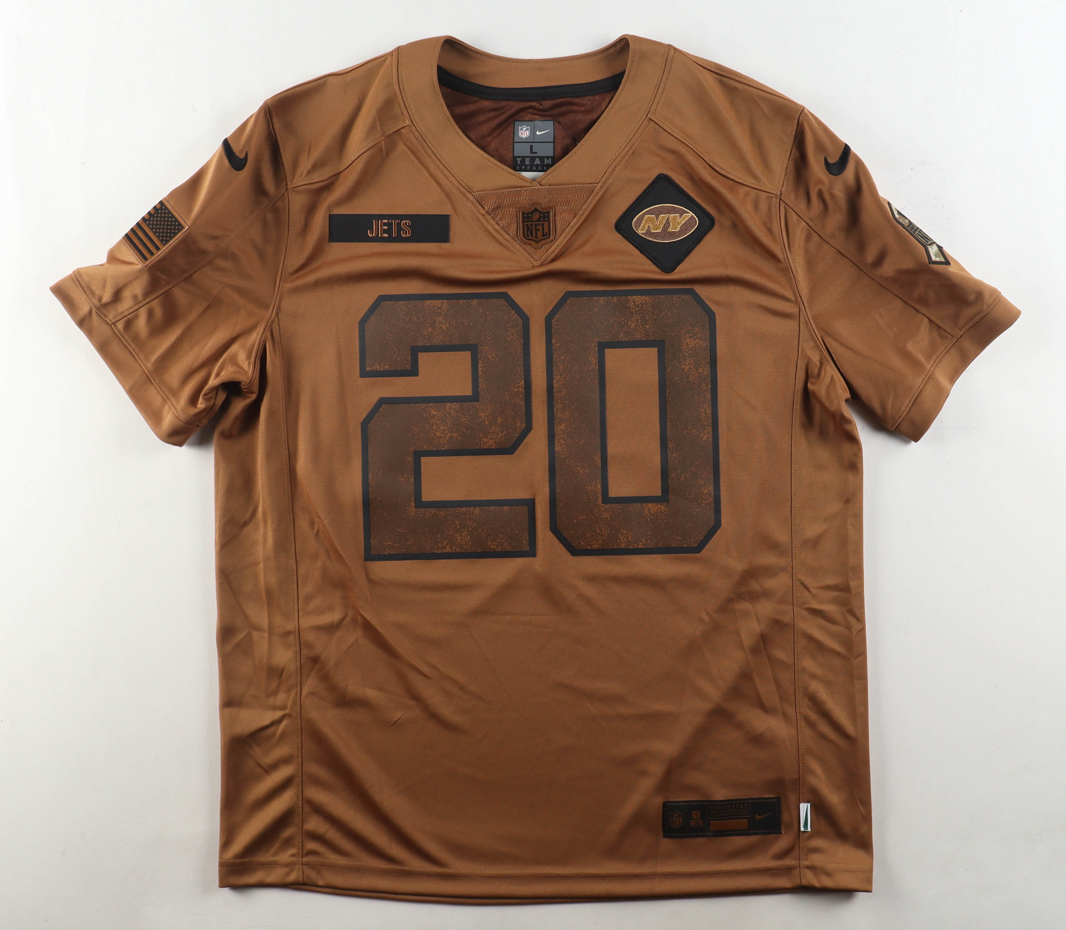 Nike authentic jersey with everything pressed on, size L. Hand-signed by Breece Hall (New York Jets).