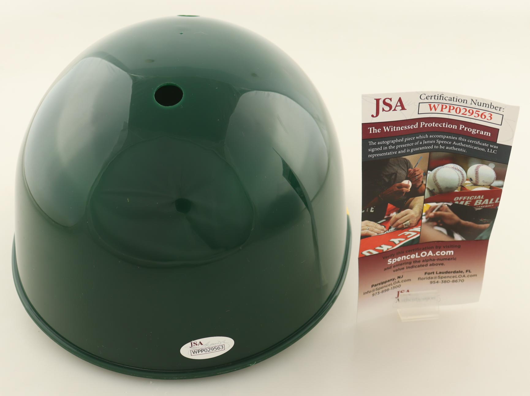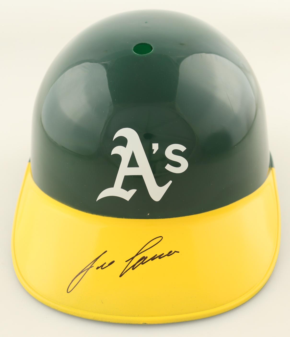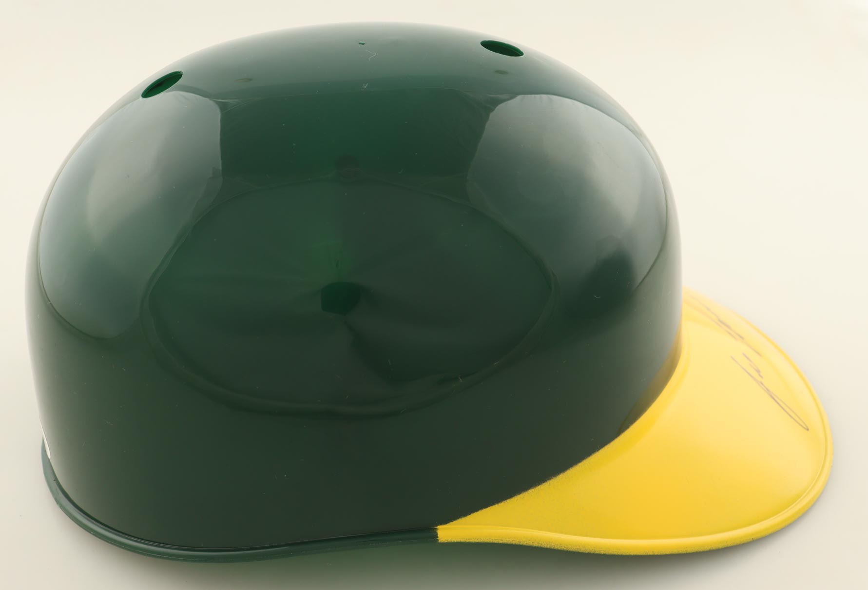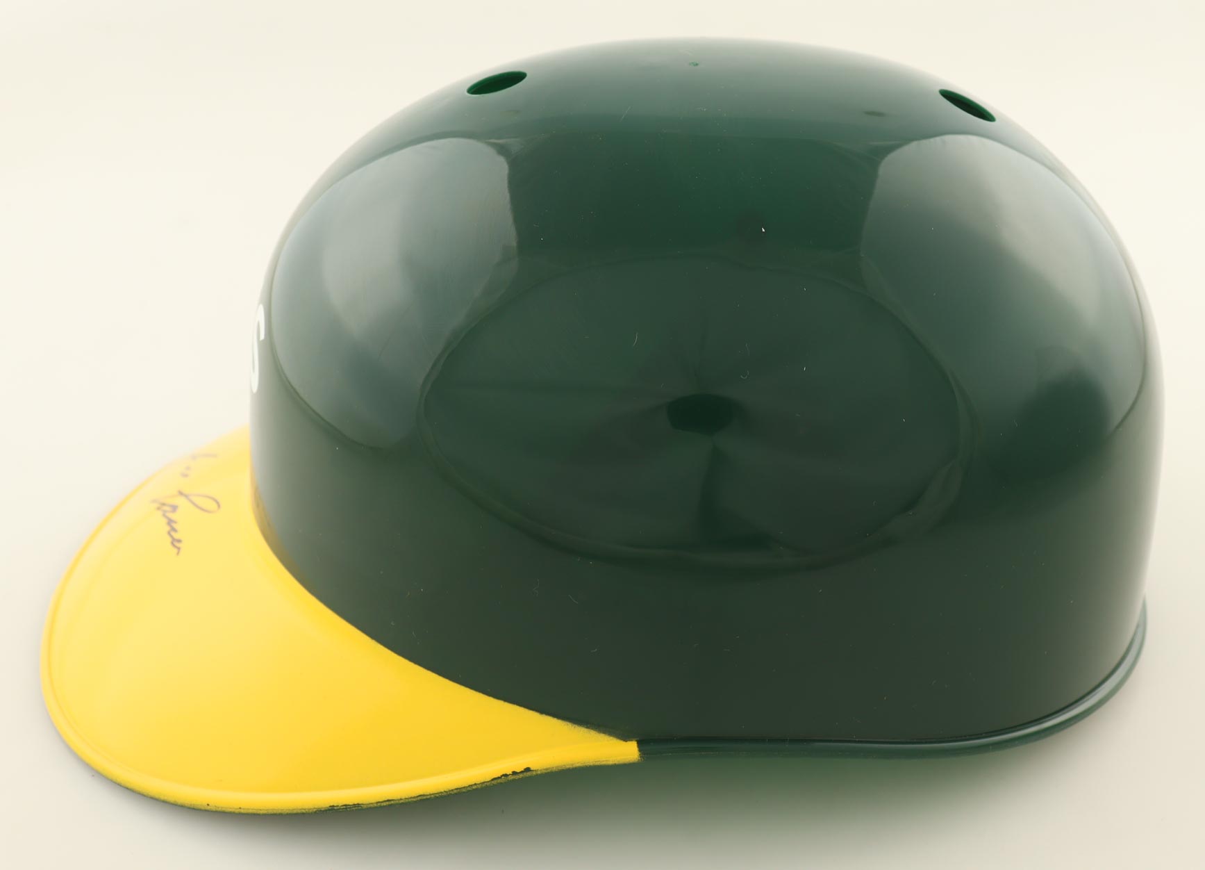 Oakland Athletics full-size replica batting helmet has been hand-signed by Jose Canseco.