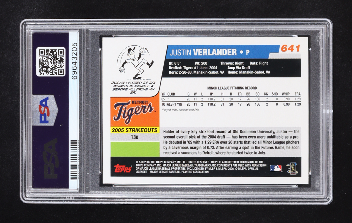 Justin Verlander 2006 Topps #641 RC (PSA 10)