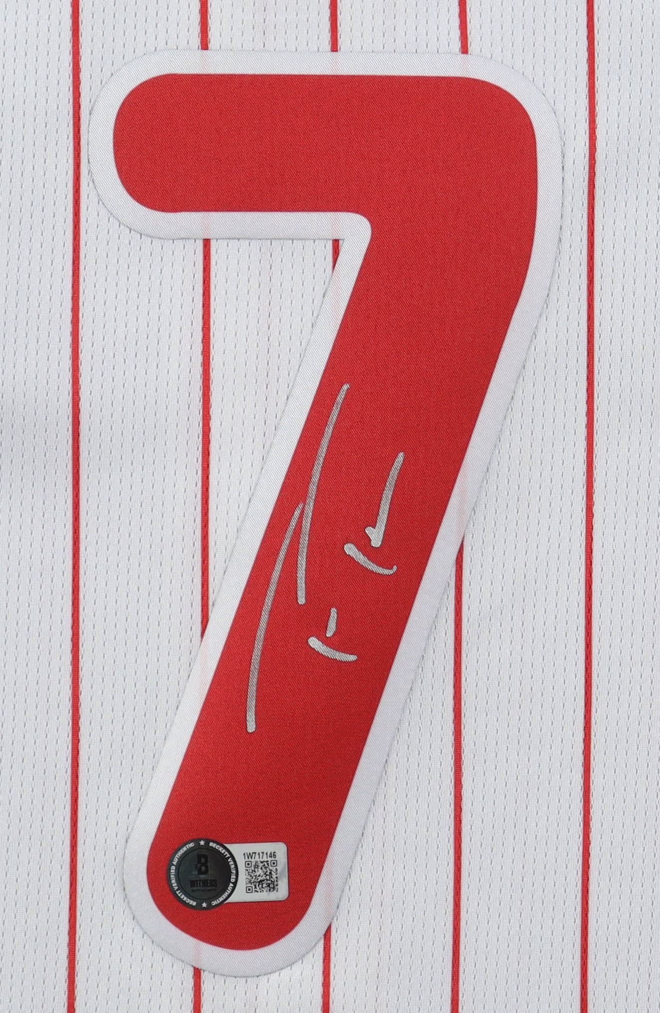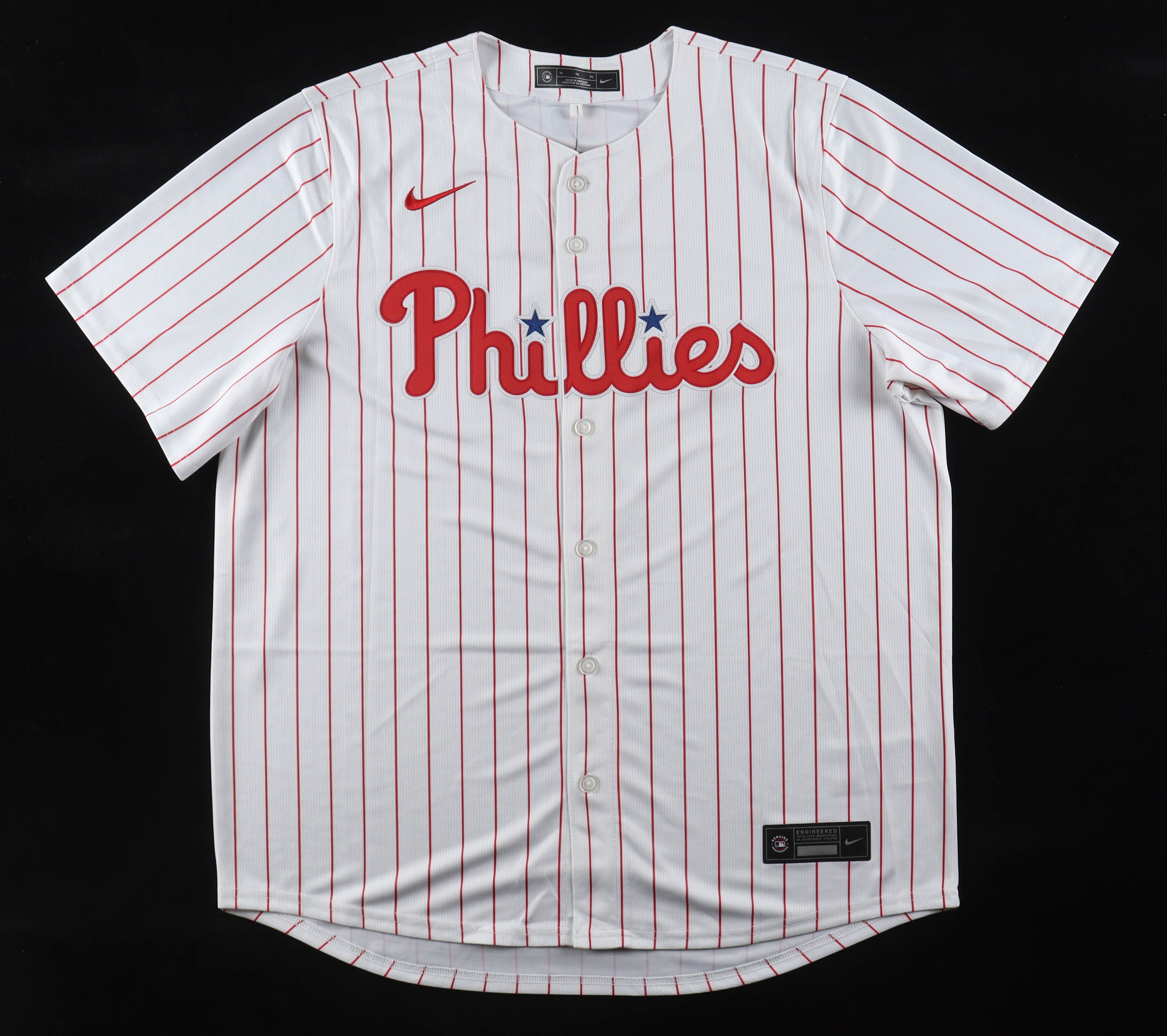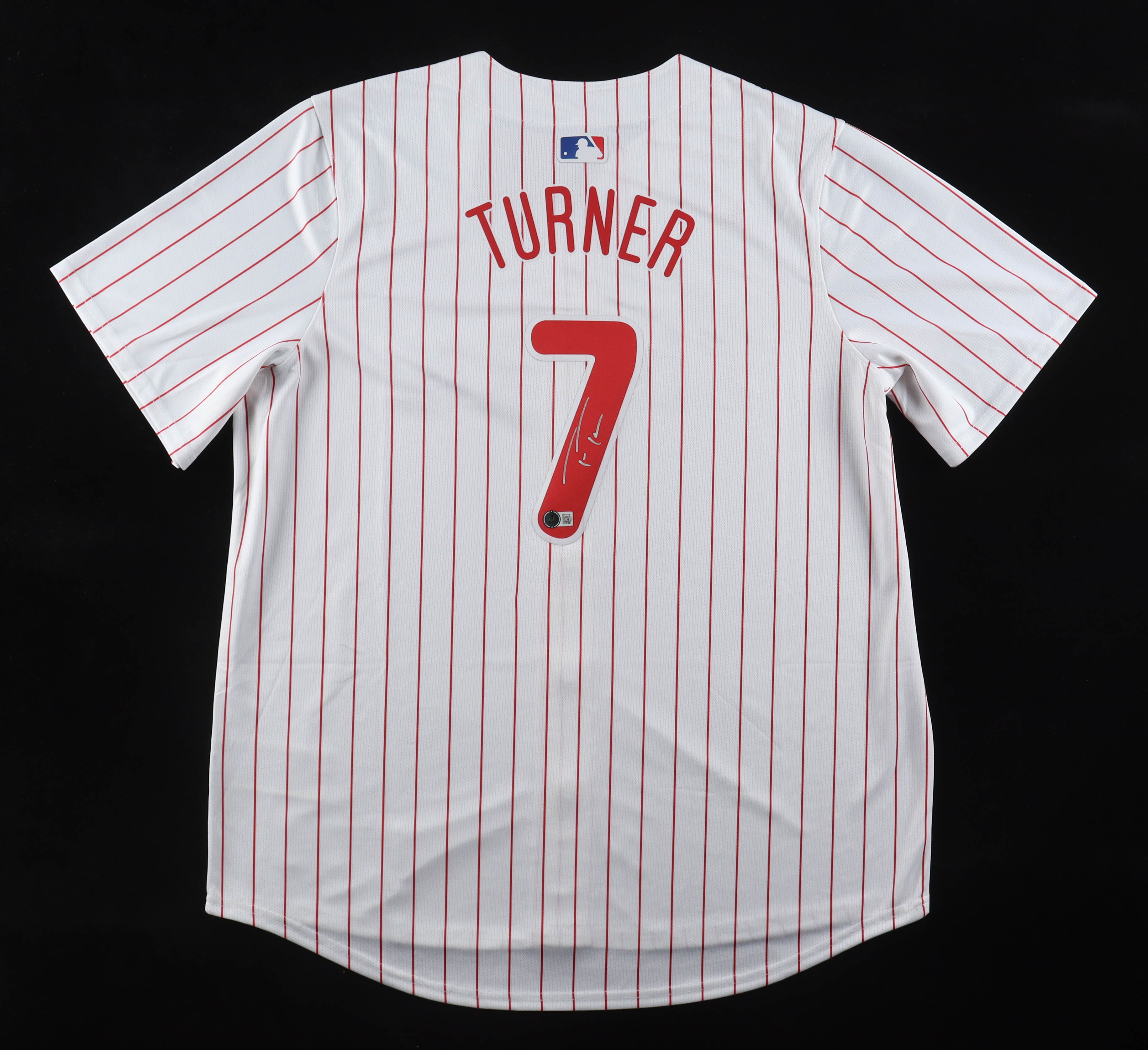 Nike authentic jersey with everything pressed on, size XL. Hand-signed by Trea Turner (Philadelphia Phillies).