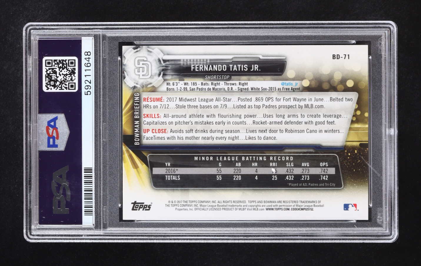 Fernando Tatis Jr. 2017 Bowman Chrome Draft #BDC71 RC (PSA 10)