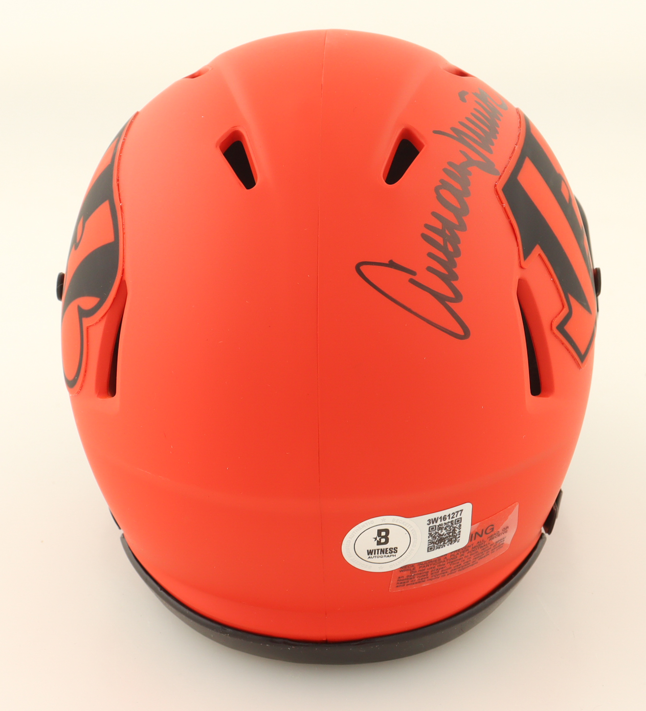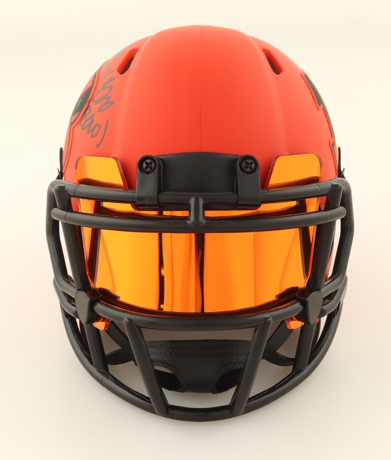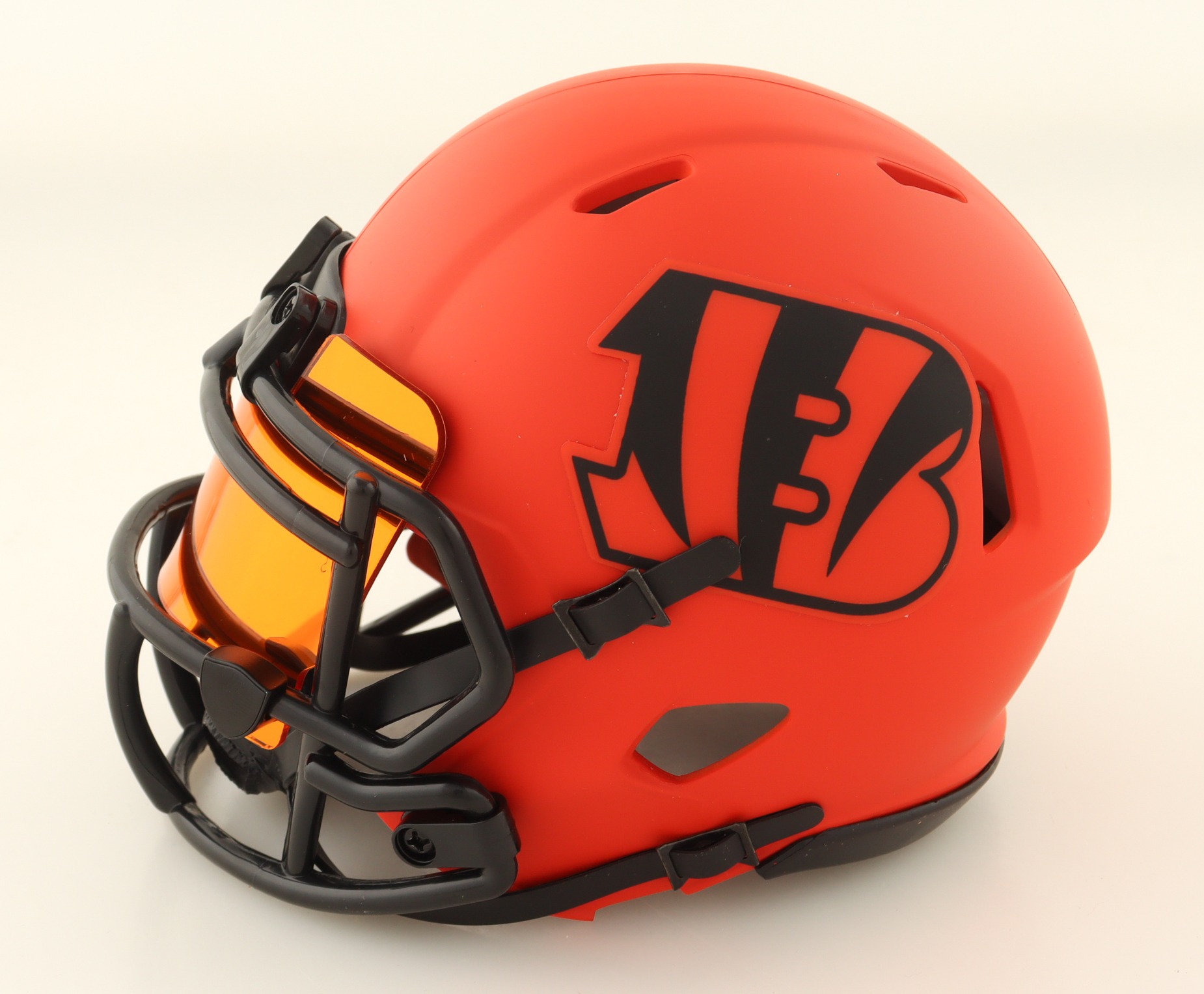Riddel Cincinnati Bengals Rave Alternate Speed mini helmet with visor has been hand-signed and inscribed by Anthony Munoz (HOF).