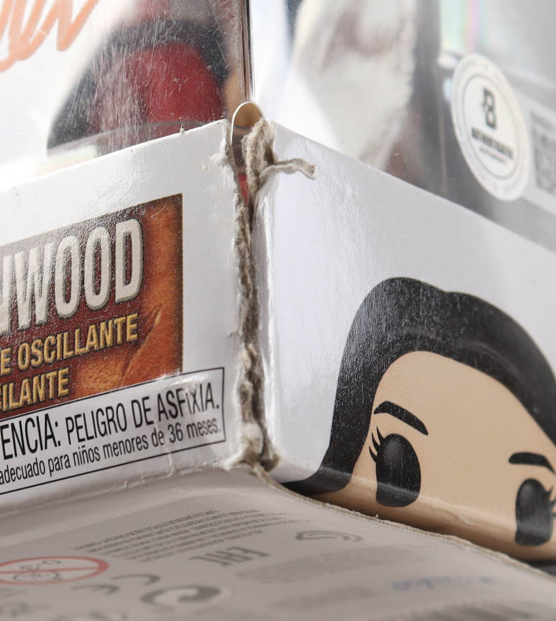 Vinyl Figure measures approximately 4" tall. Hand-signed and inscribed on the packaging by Karen Allen. Please note the packaging is heavily damaged, see photos for more details.