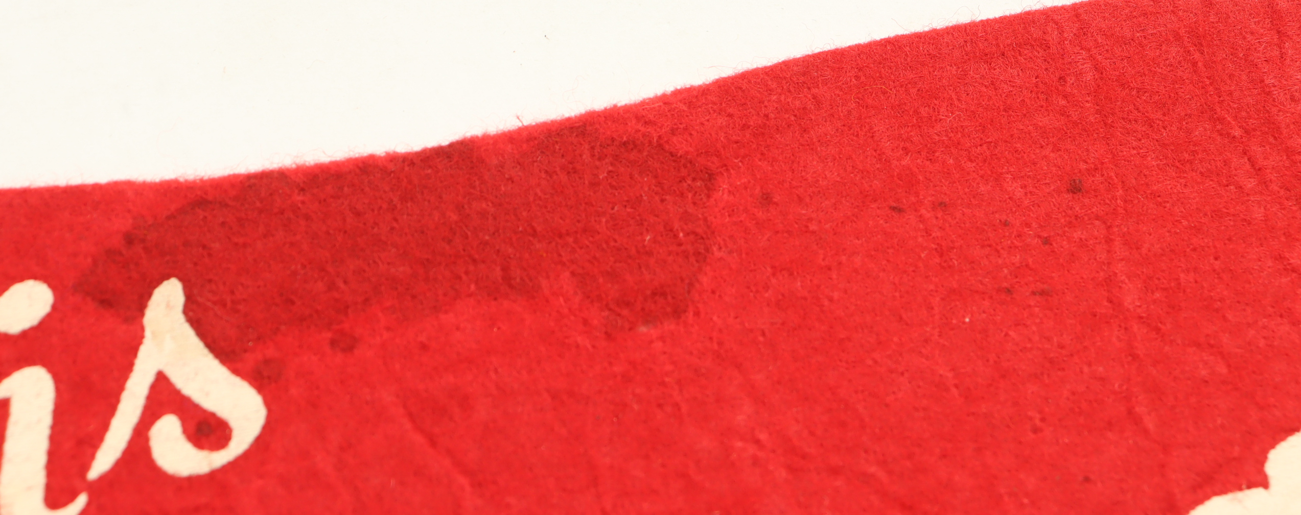 1965 St. Louis Cardinals pennant flag measures approximately 12" x 30" in size. Please see photo for more details regarding the condition of the flag. Note that the item is unsigned as well as a stain on the flag.