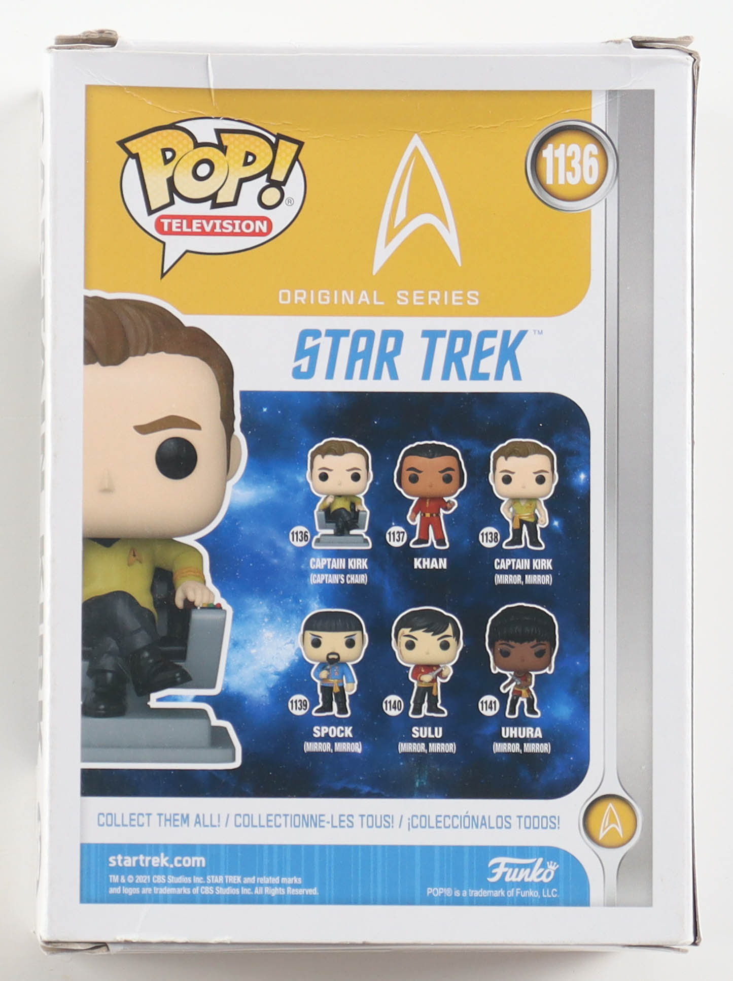 Vinyl figure measures approximately 4" tall and has been hand-signed by William Shatner. Please note, there are tears on the corners and creases throughout the packaging.