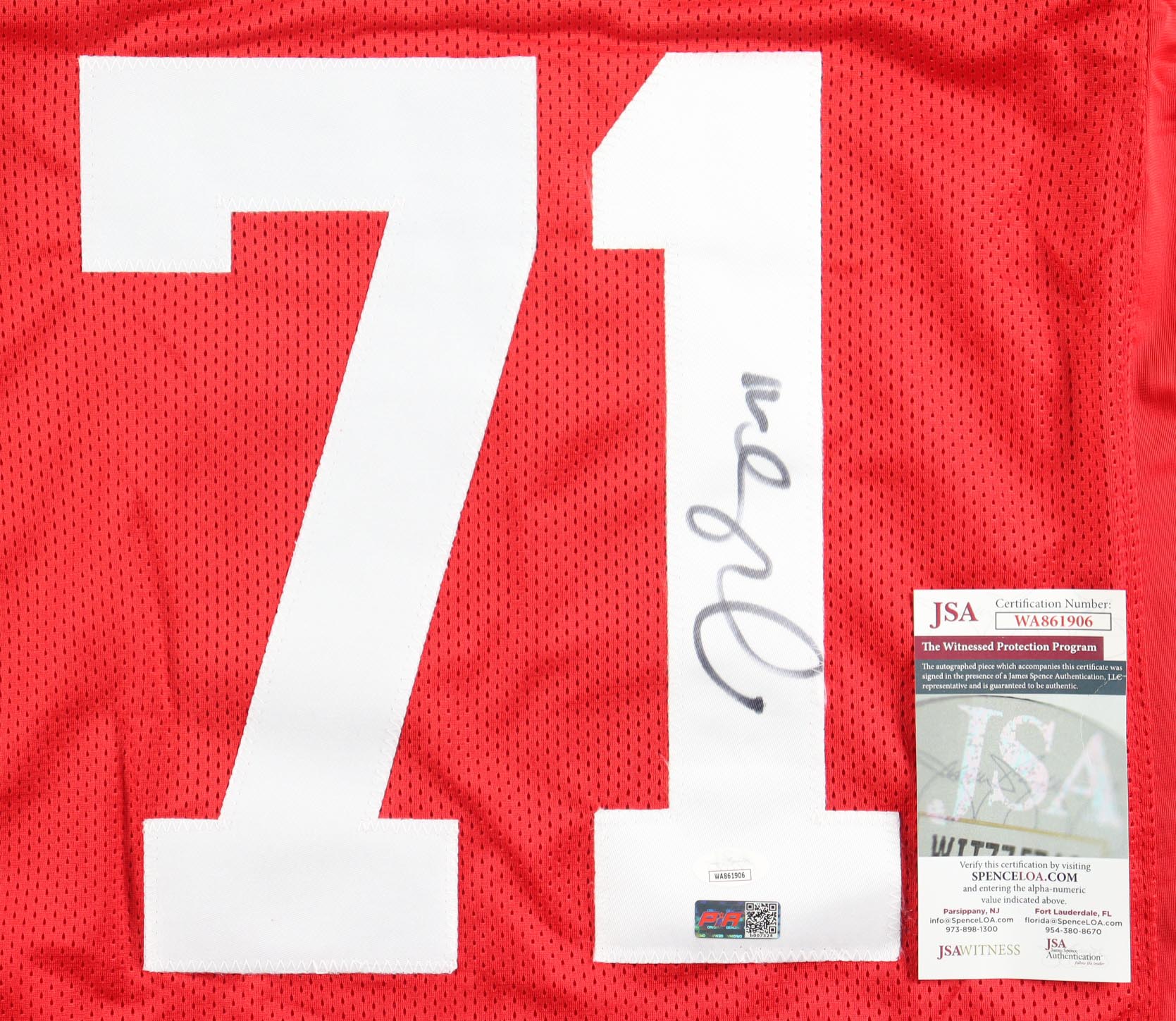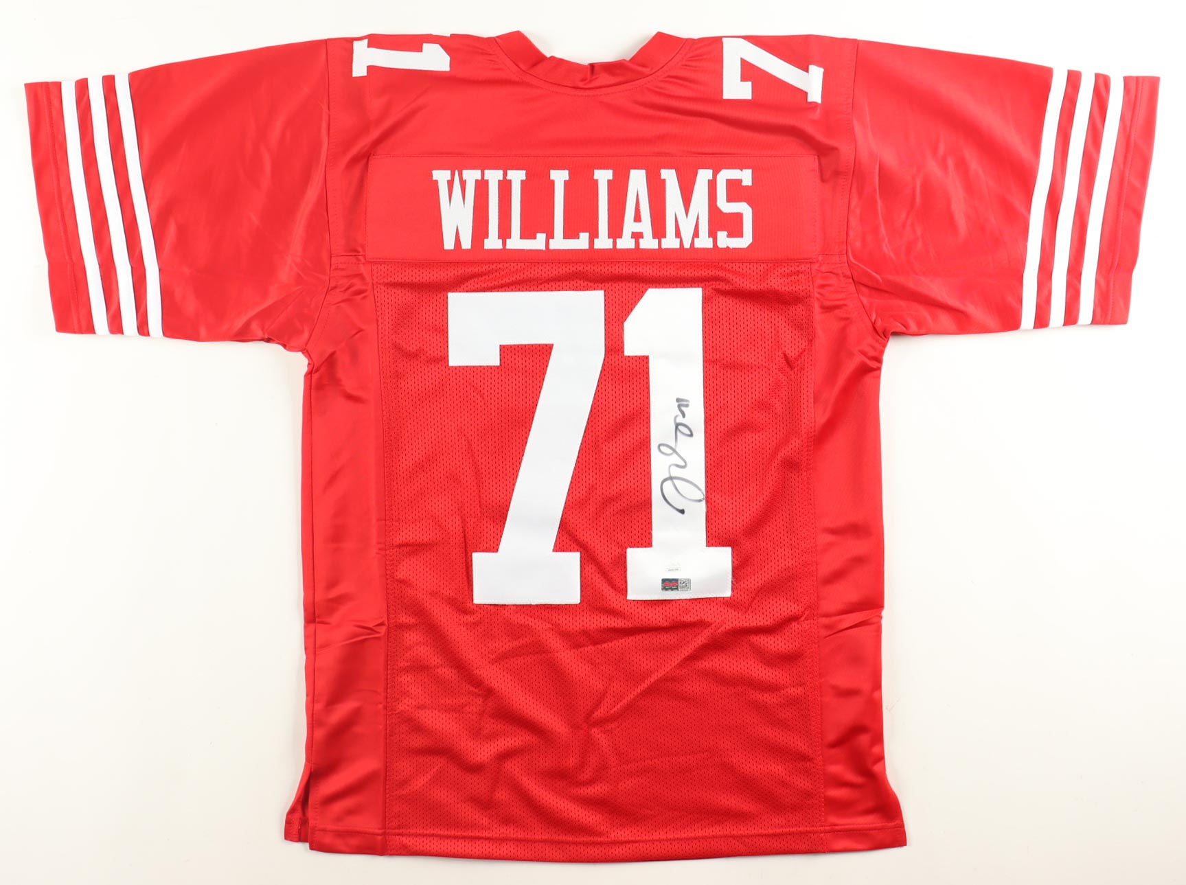 Custom jersey with everything sewn on, size XL. Hand-signed by Trent Williams.