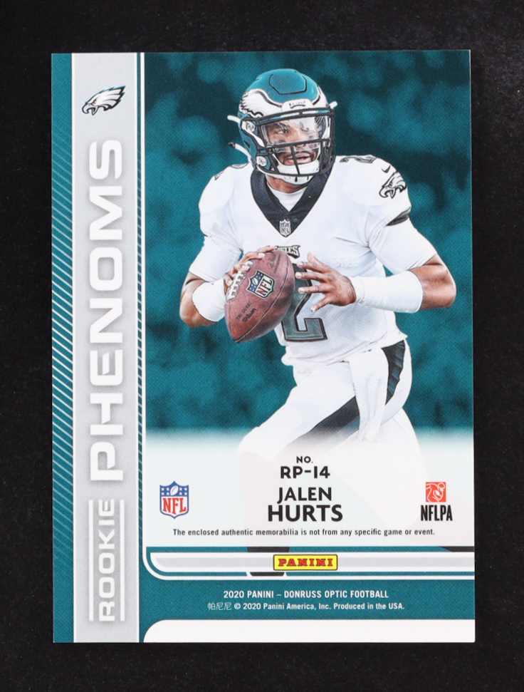 Jalen Hurts 2020 Donruss Optic Rookie Phenoms Jerseys Blue Hyper #14 RC