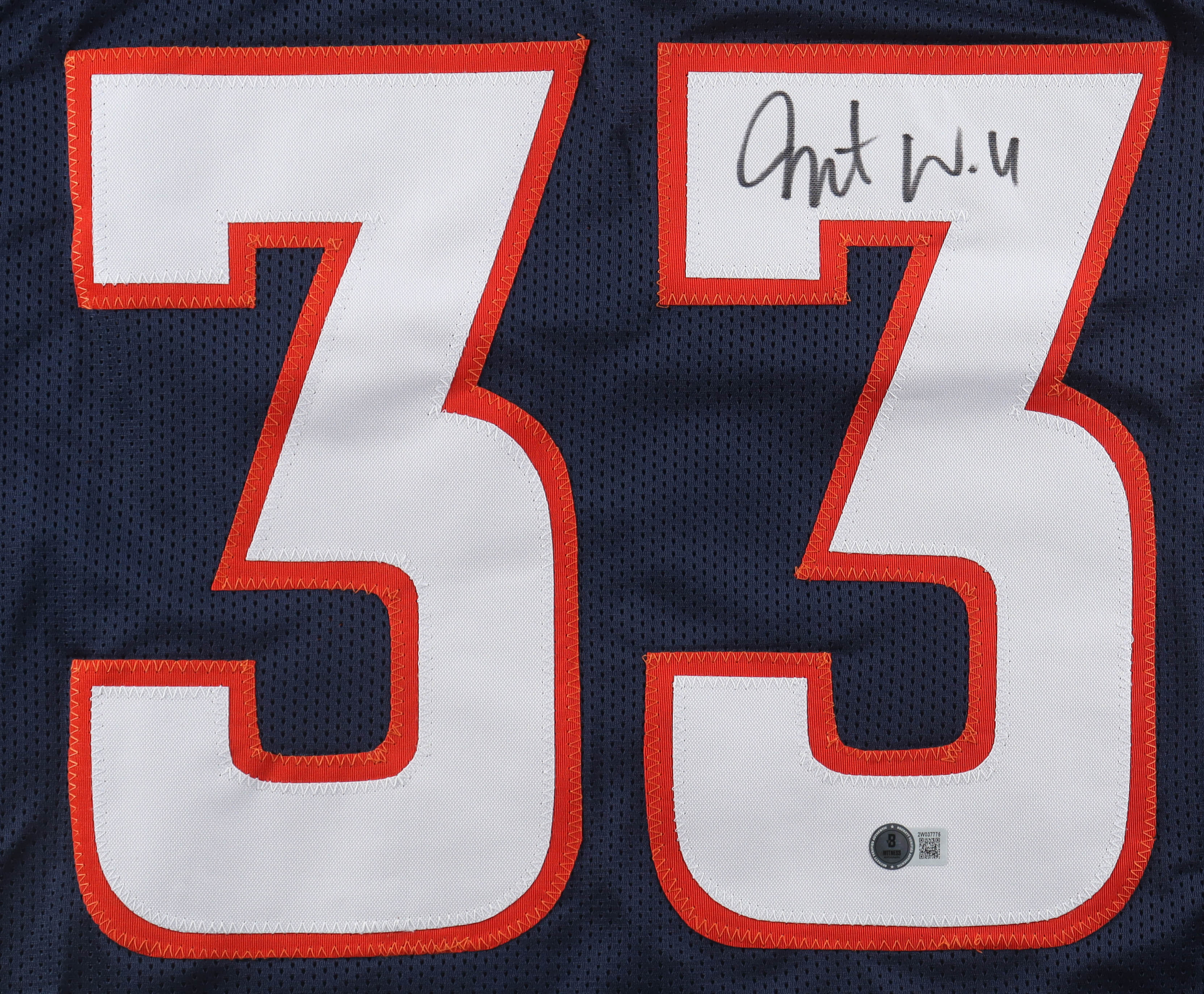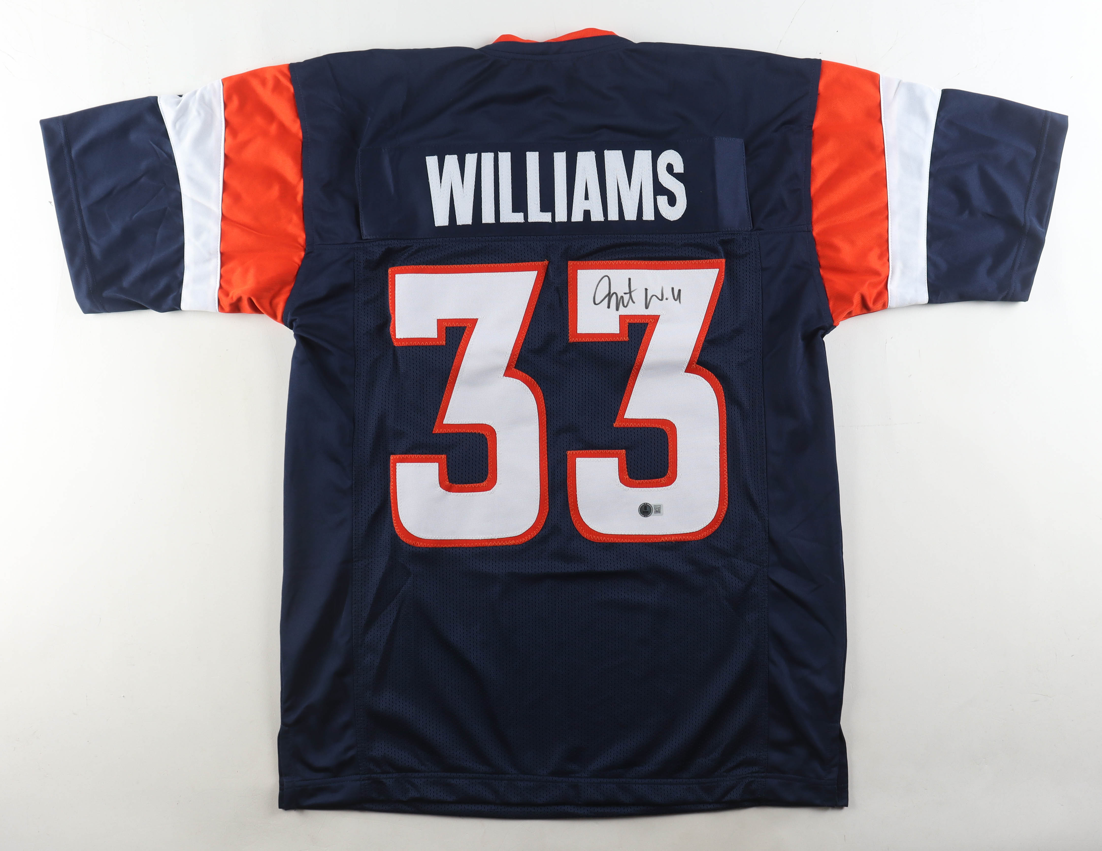 Custom jersey. Everything is sewn on, size XL. Hand-signed by Javonte Williams.