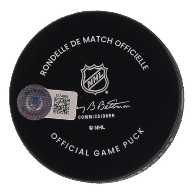 Matt Rempe Signed 2024 Stadium Series Logo Hockey Puck Inscribed "NHL Debut 2-18-24 (Beckett)