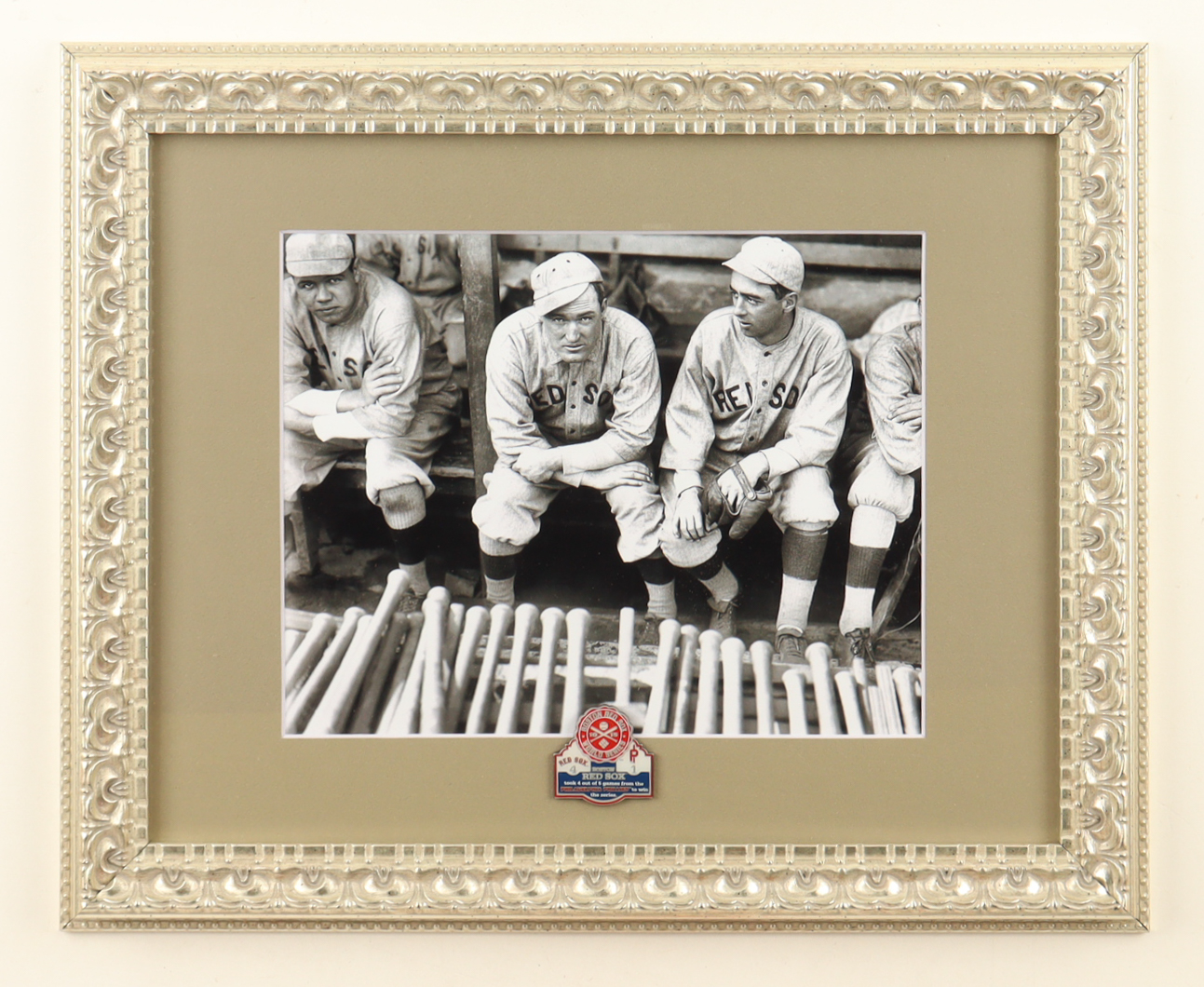 "Babe Ruth in the Fenway Park Dugout" Custom Framed Photo Display with 1915 Red Sox World Series Pin