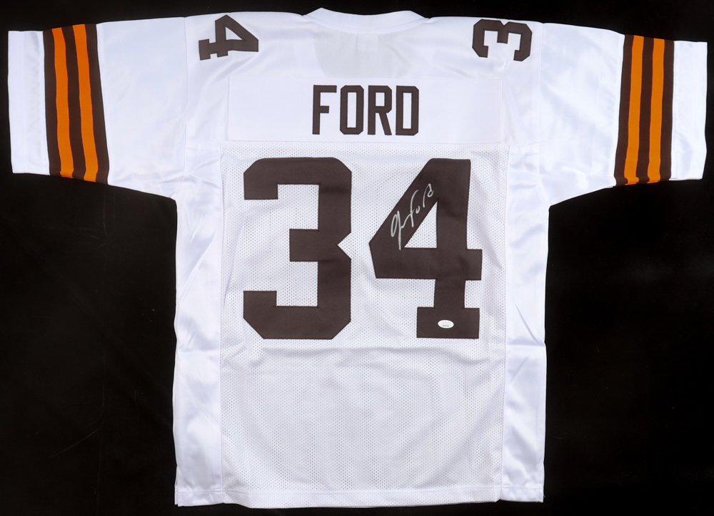 Custom jersey with everything sewn on, size XL. Hand-signed by Jerome Ford (Cleveland Browns).