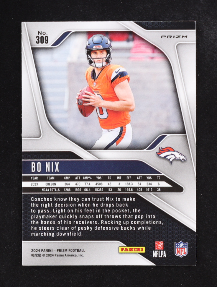 Bo Nix 2024 Panini Prizm Prizms Orange Disco #309 RC