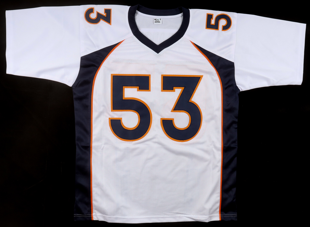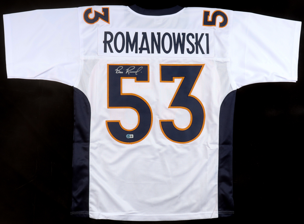 Custom jersey with everything sewn on, size XL. Hand-signed by Bill Romanowski.
